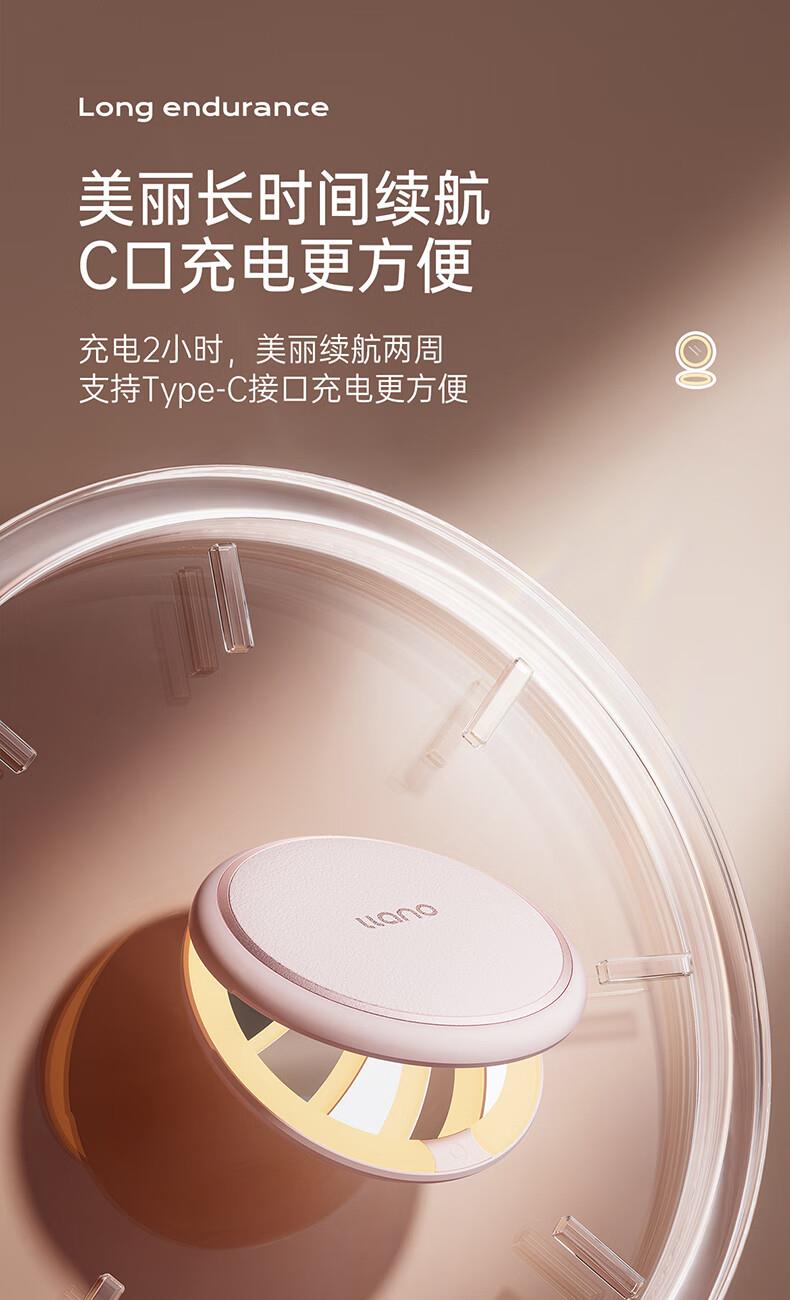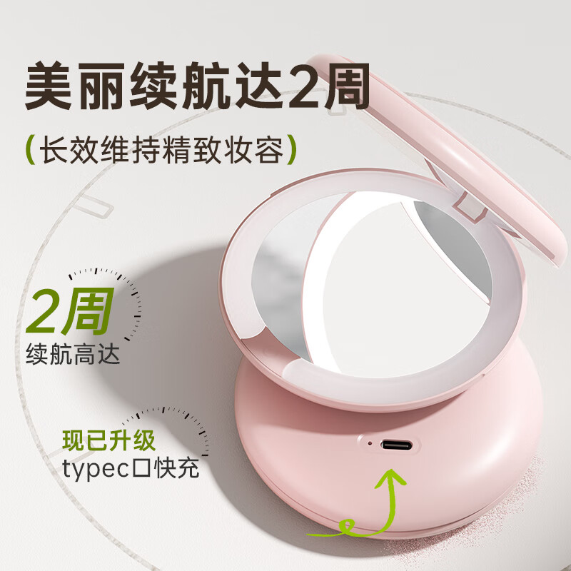 绿巨能便携式感应化妆镜/植皮粉色MM002