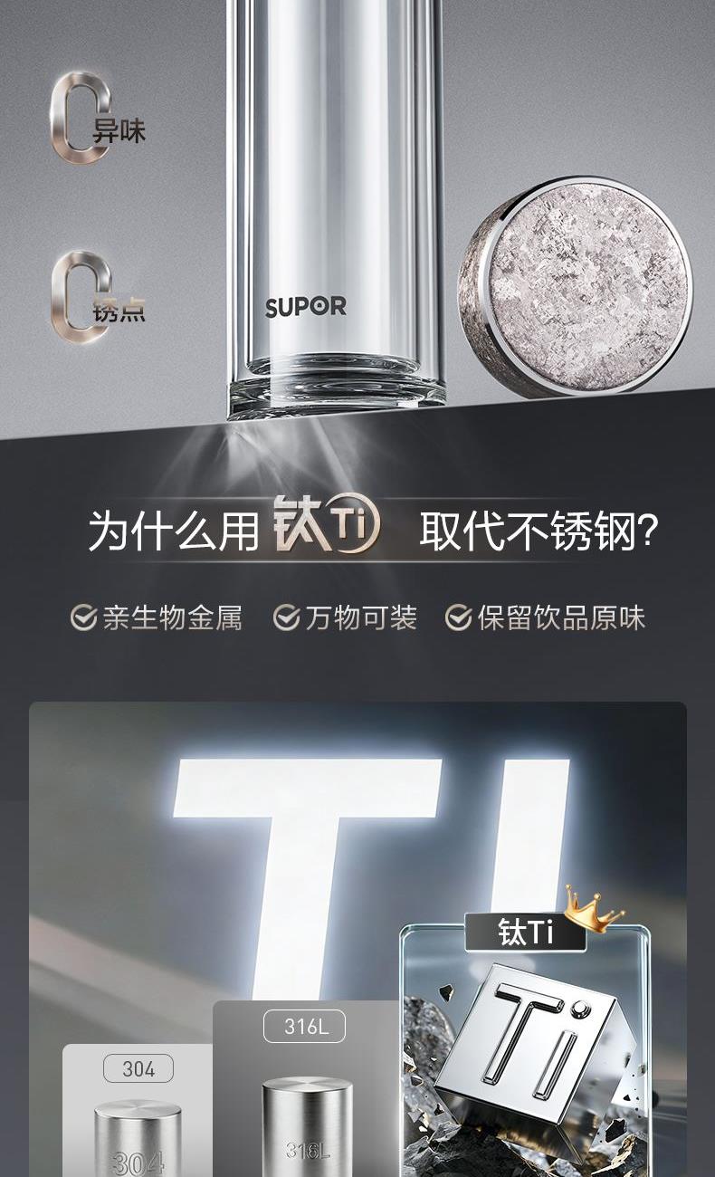 苏泊尔纯钛耐热玻璃杯400ML
