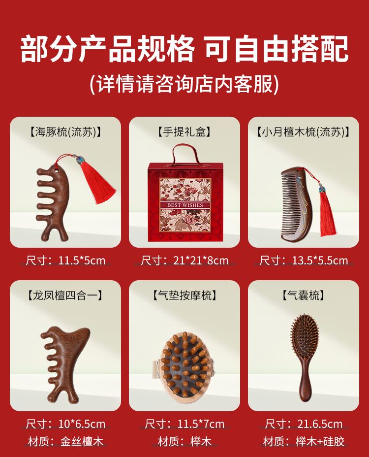 甜蜜点企业送客户开业活动金丝檀木梳子套装DAL1189