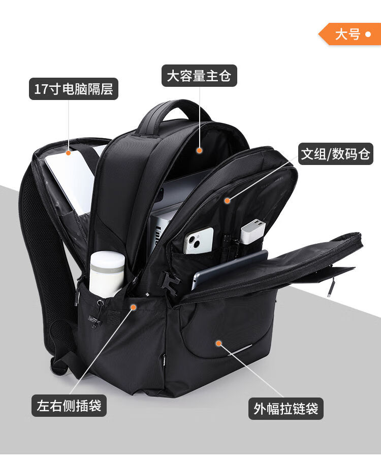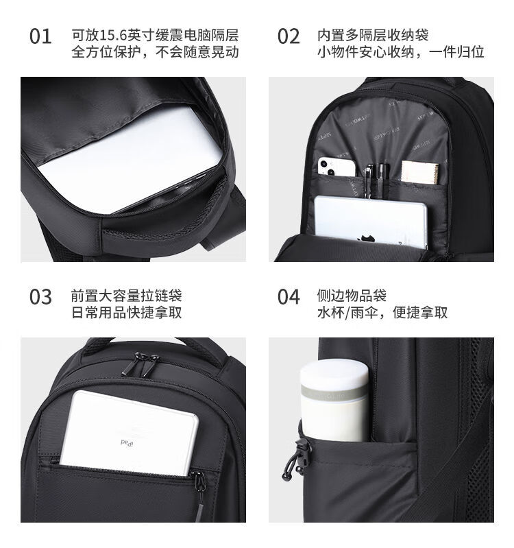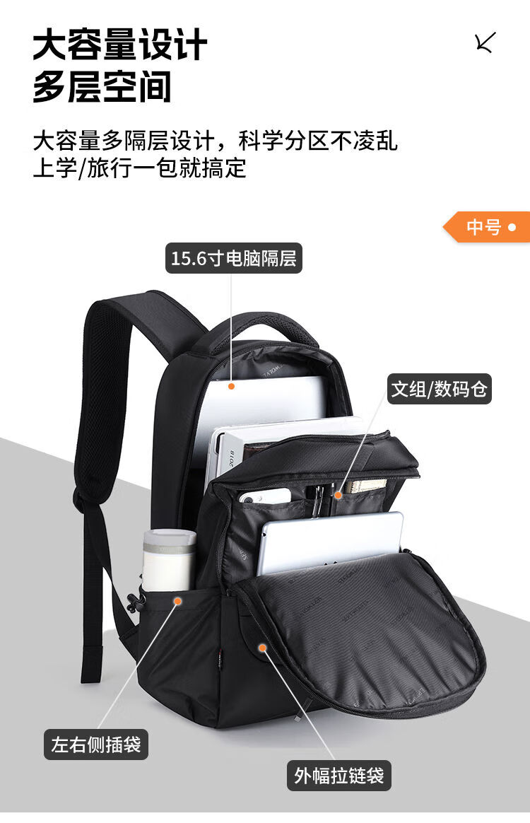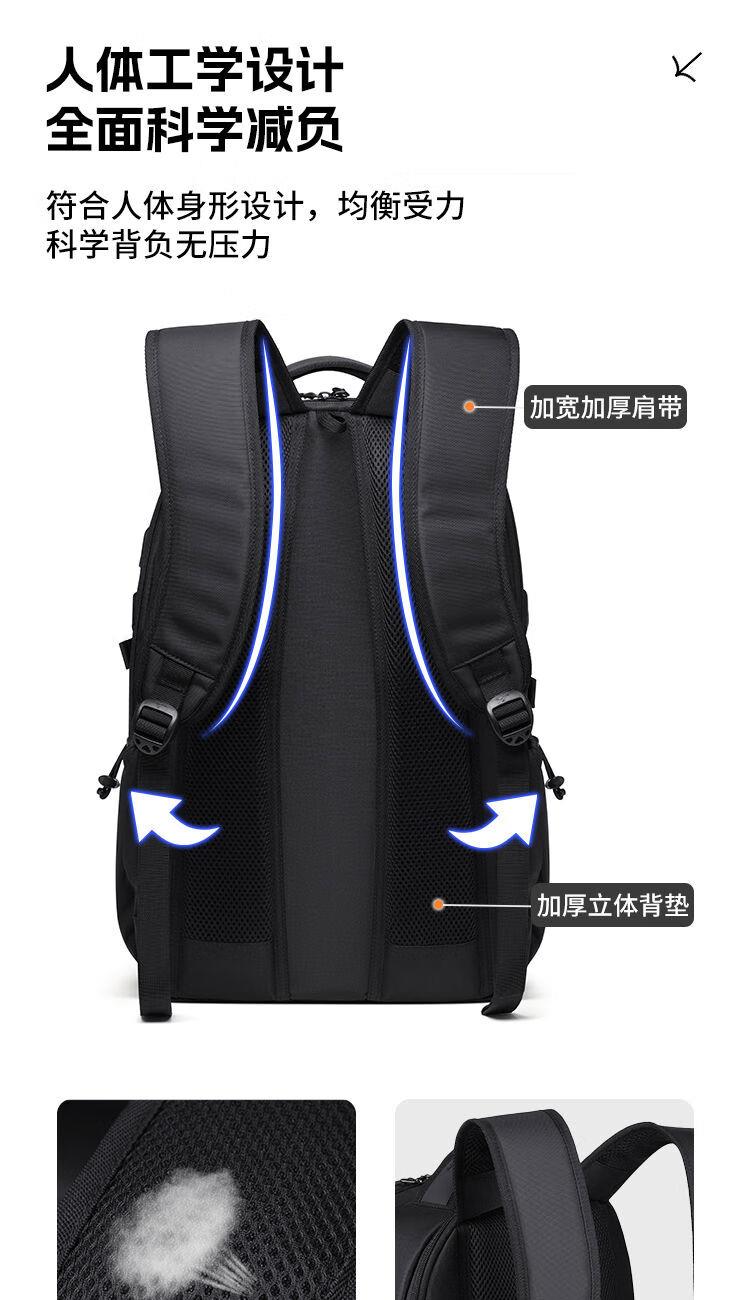 类别:背包 外部材质:织物 闭合方式:拉链 规格:300x180x440mm 容纳电脑尺寸:15.6英寸 风格:通勤风 商务风 携包出行,旅途无忧,立体挺括包型兼顾时尚外观与功能性,轻松驾驭多种都市出行场景 内里大容装载,多层收纳空间,满足多样收纳需求,轻装出行,采用高密度织物面料,防刮耐用,防泼贱,轻松应对泼水,外置USB充电接口,3D透气蜂窝设计,柔软减压肩带