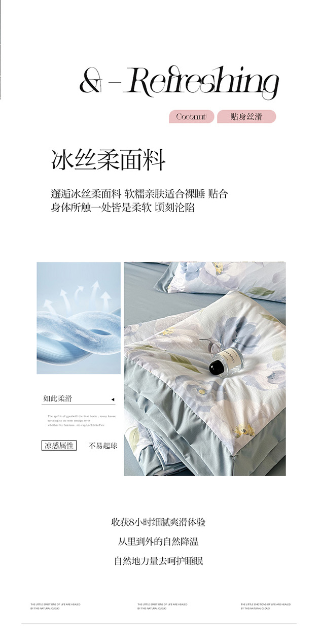 尺寸:200*230cm 面料:冰丝柔 填充:羽丝棉 重量:1300g 执行标准:GB/T22796-2021 安全类别:GB18401-2010 B类 1.严选高密水洗冰丝为原材料,搭配凉感因子,注入凉席材料中温和清凉,适合多种人群使用。 2.经过原料选材、弯曲、统口、抛光、组装、编织等多道工序打磨出匠心凉席。