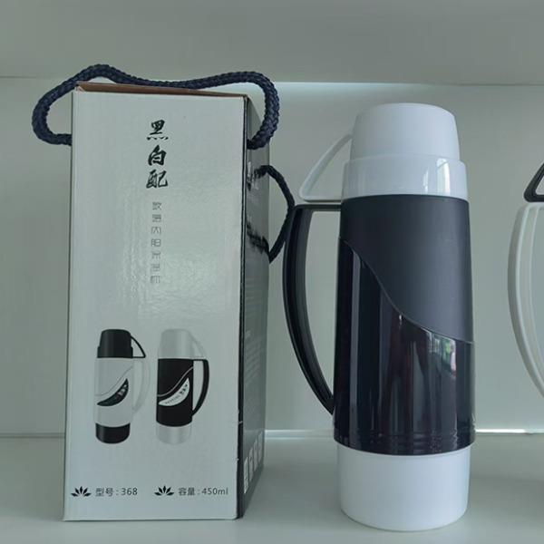 ◆优质塑料PP外壳,食品级硅胶密封圈,安全卫生、经久耐用! ◆外形设计时尚,简约而不简单。手柄采用人体工学和美学的独特设计,使用舒适、流畅! ◆内胆为金星玻璃瓶胆,450ML,采用高硼料强化工艺,在-10°至105°下防爆, 可保冷保热,保温性能好,便于携带,是居家、旅行的好伴侣! ◆品质标准按中华人民共和国GB11416-2002标准执行,保温效果 24小时≥44°! ◆ 瓶身可根据客户要求定制,并印上精美LOGO或图案,是各大中型企业促销赠品的佳选!