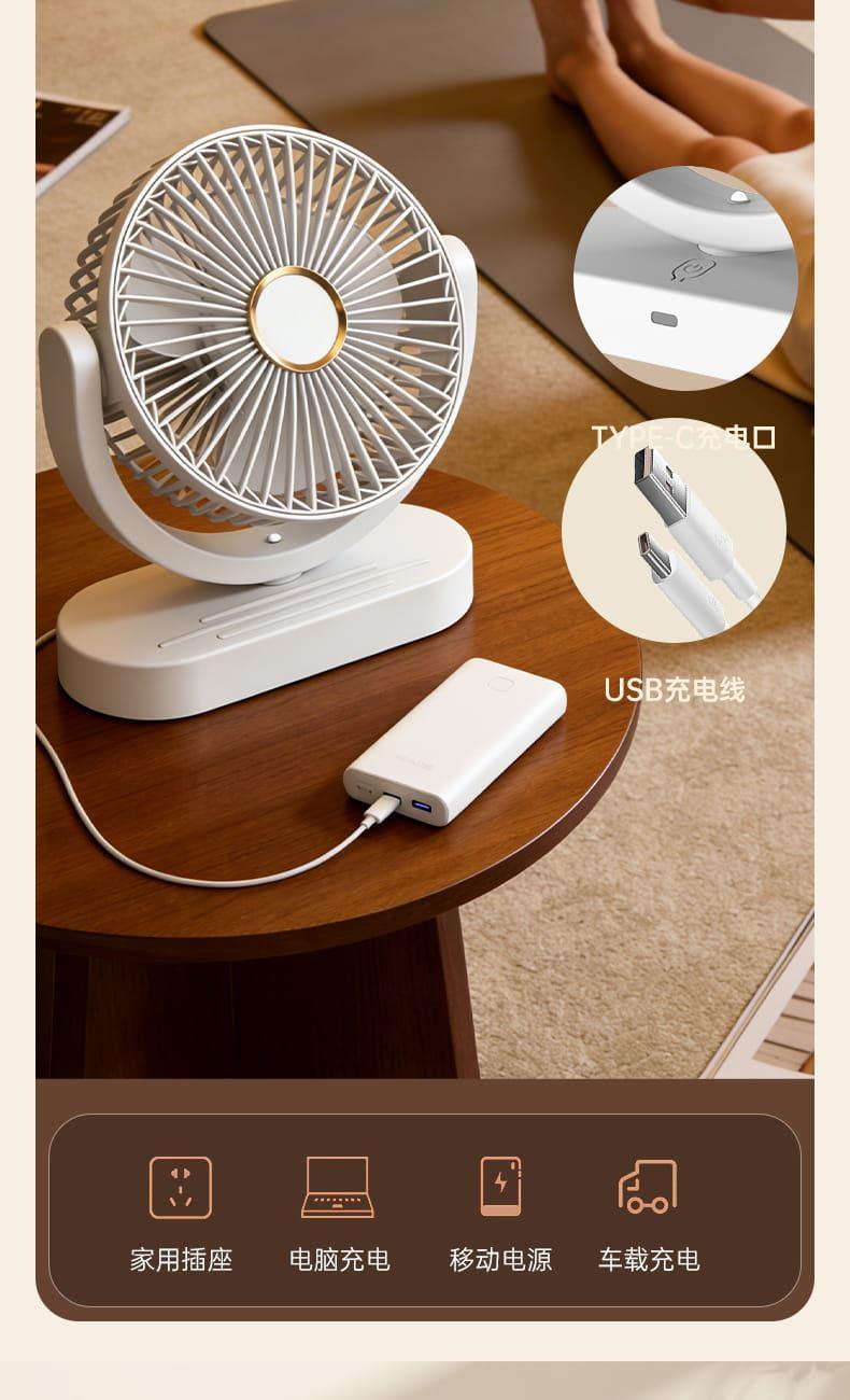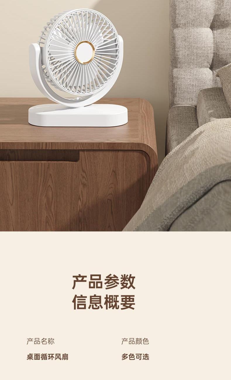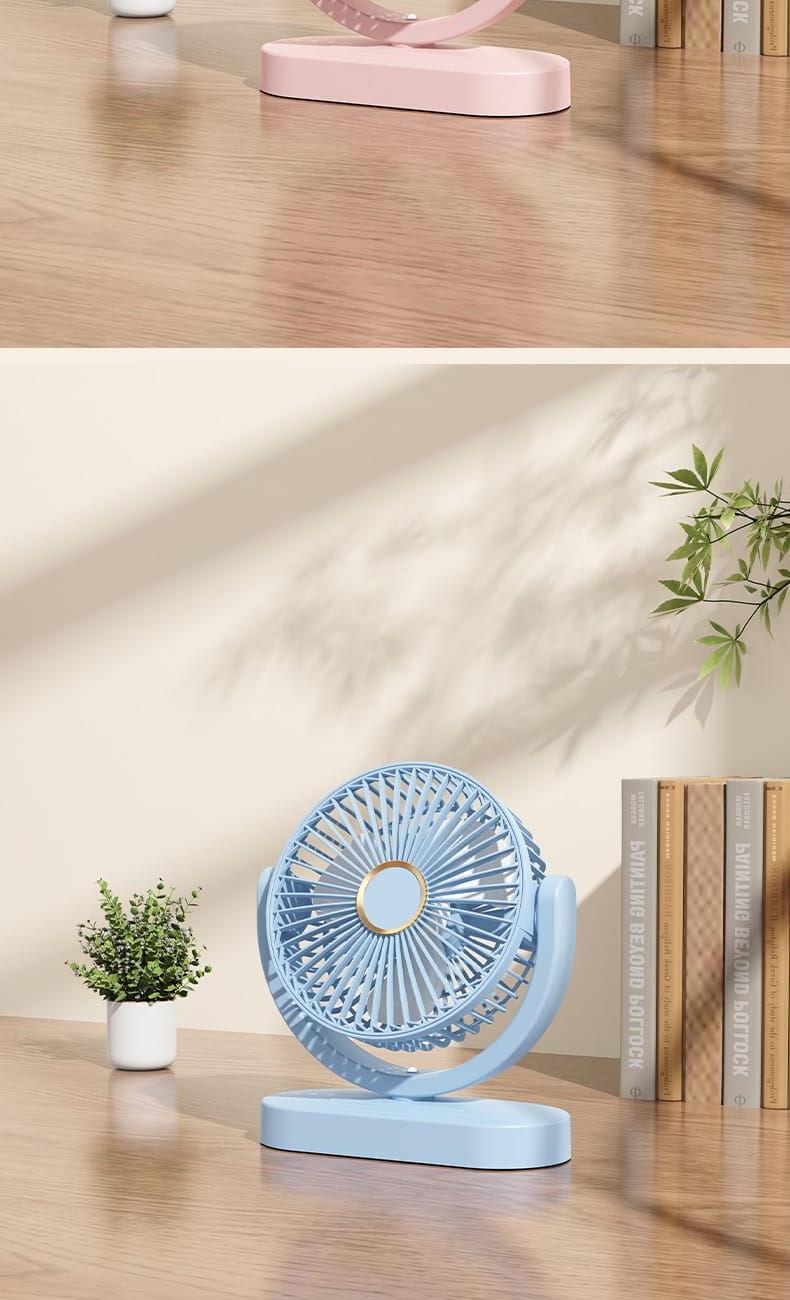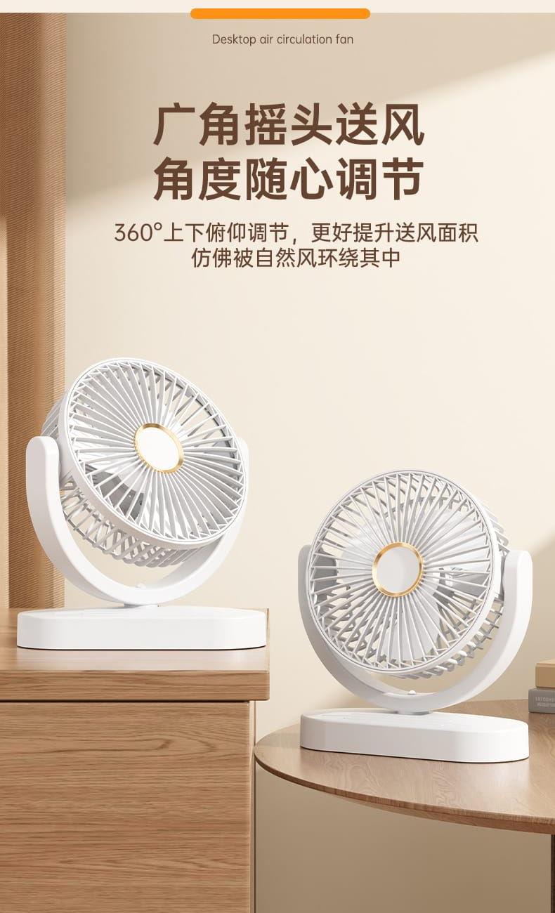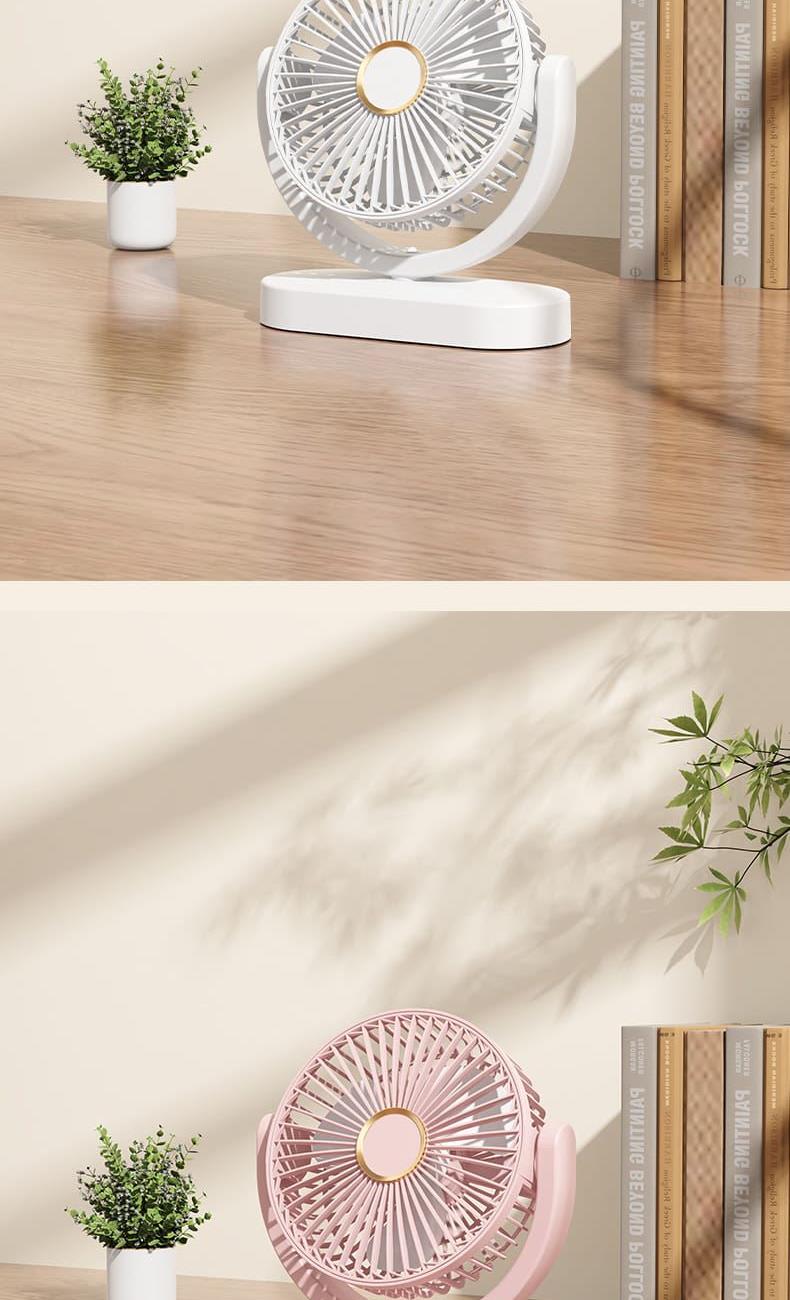 电池容量:1800mAh 产品重量:260g/344g 产品尺寸:20*7.5*17.5cm 包装尺寸:18*8.5*20.5cm 整箱数量:74*43.8*42.5cm/40个/15kg 产品颜色:白色、粉色、蓝色、卡其色 档风可调节,8英寸大网罩 内置电池,静音无刷电机,便携使用