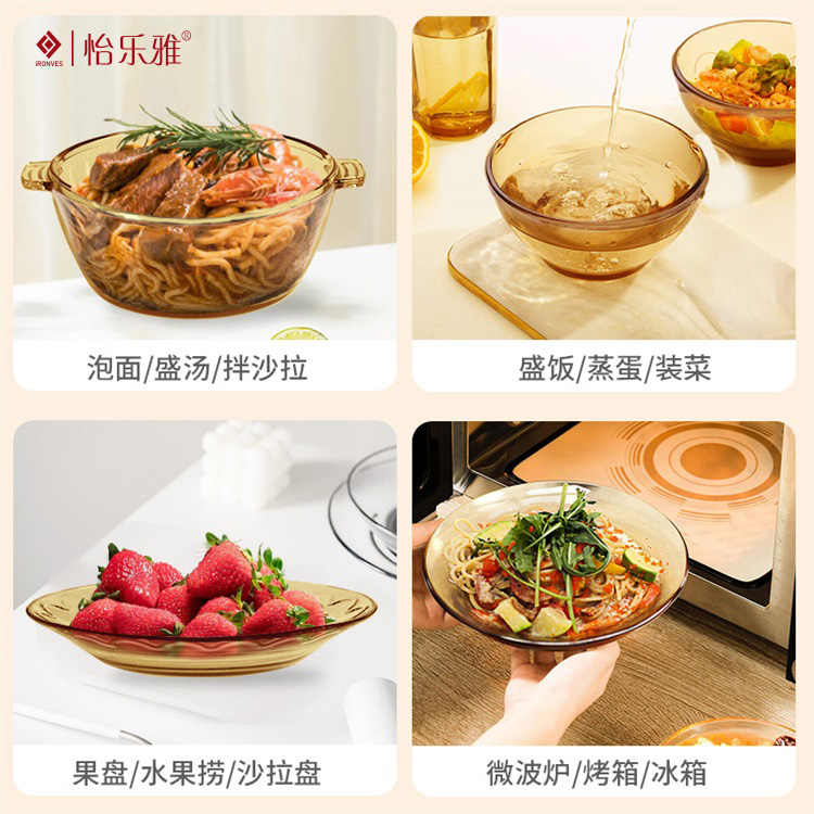 (怡乐雅)琥珀色耐热玻璃餐具套装(九件套)QS-03