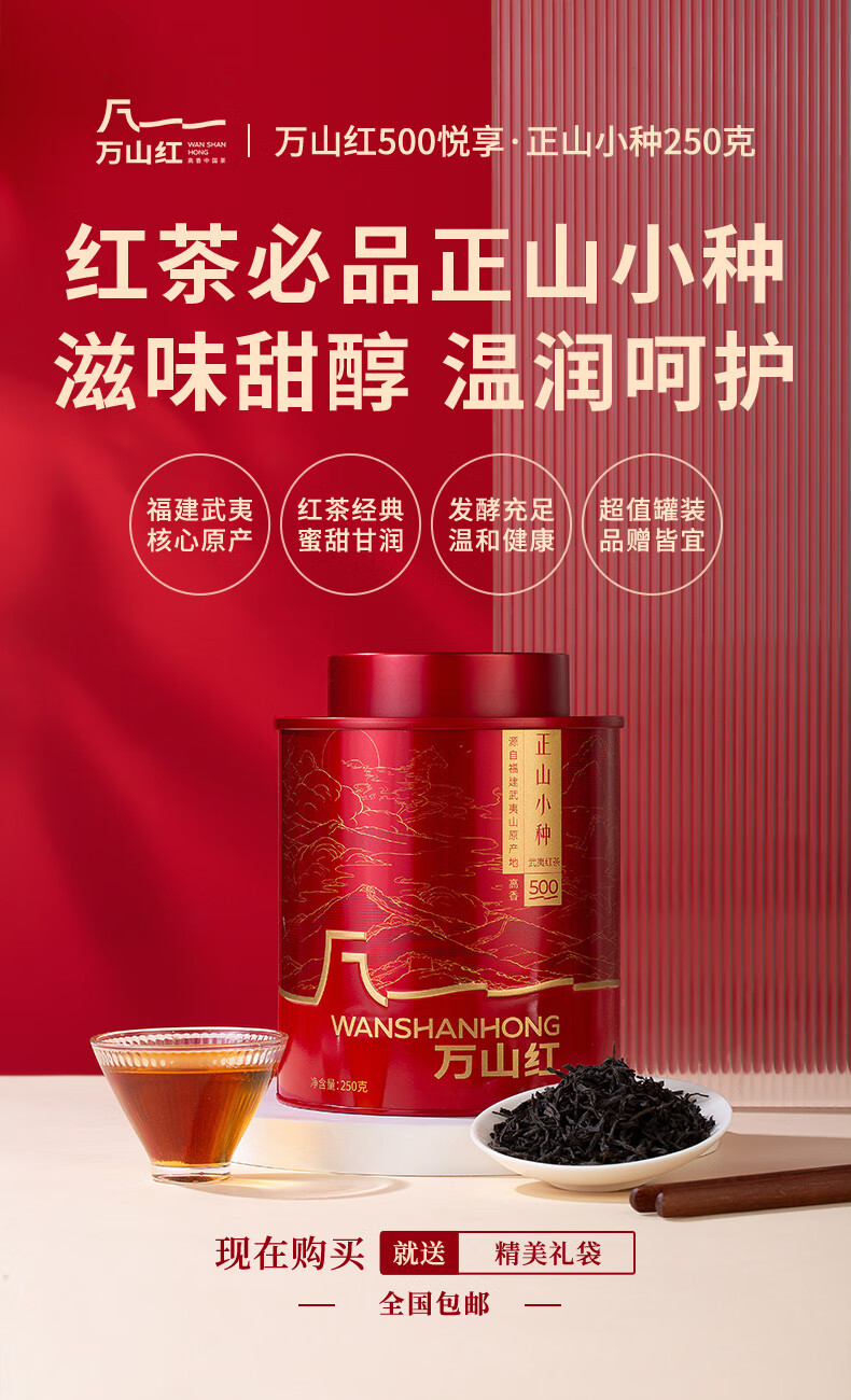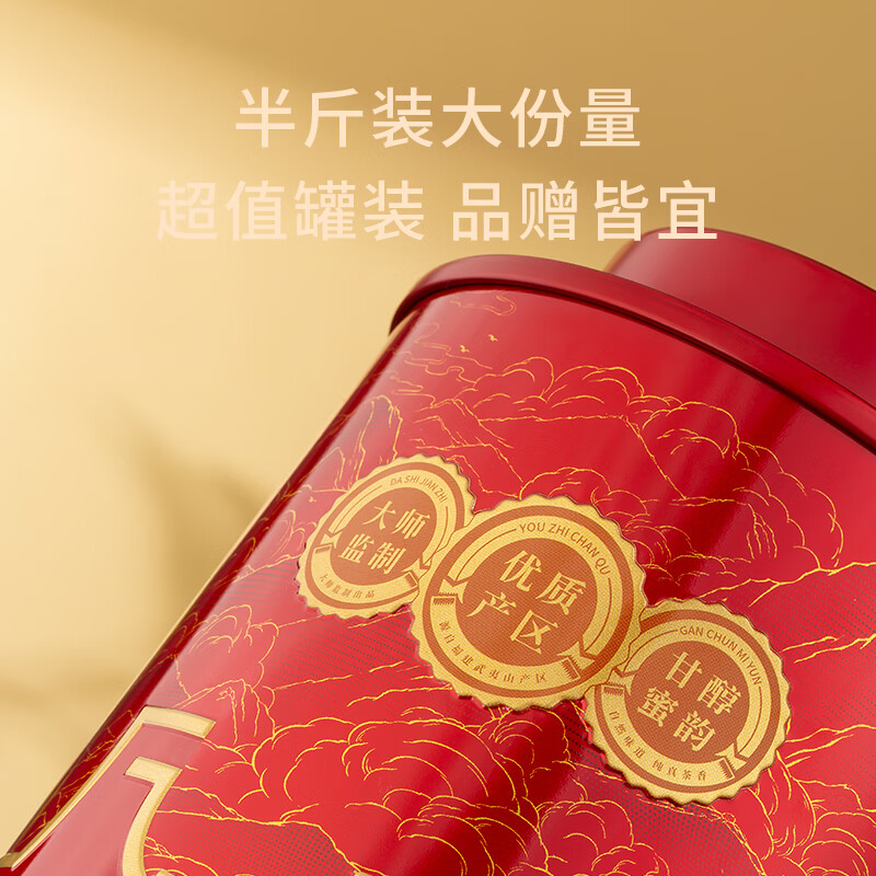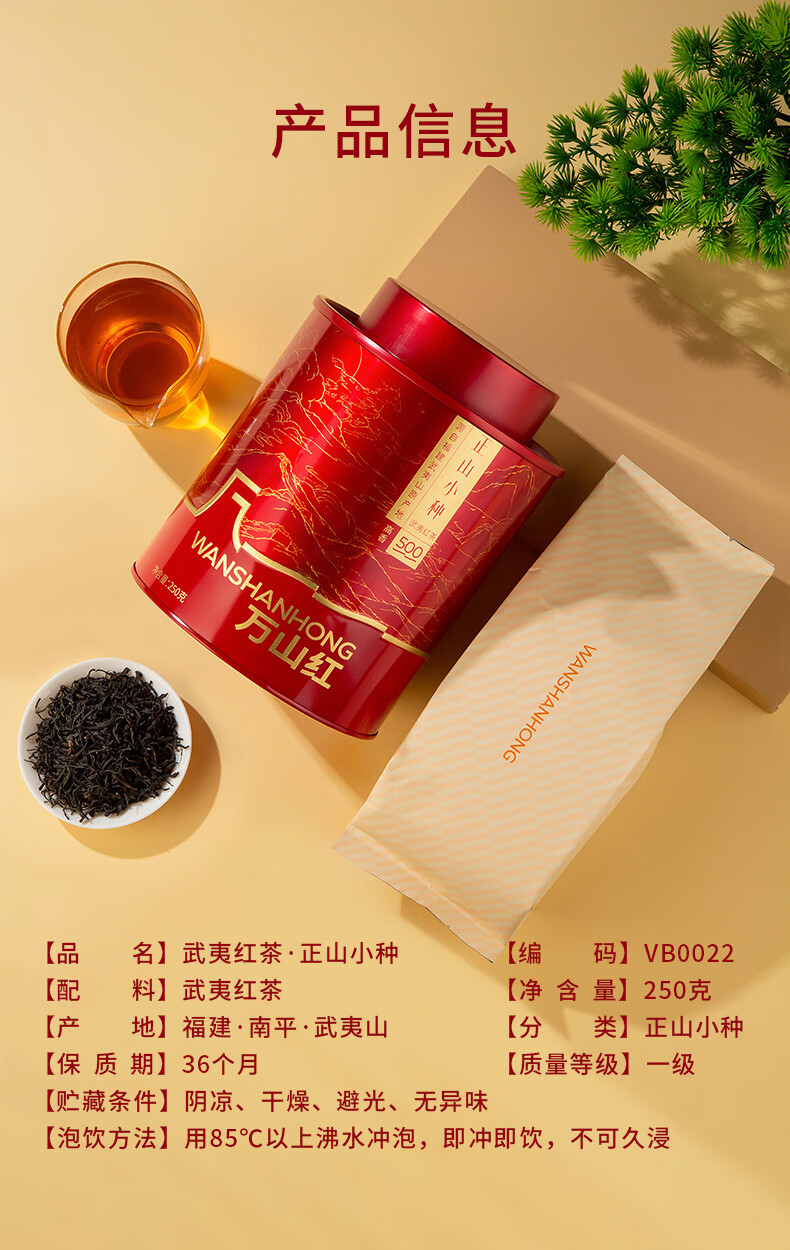 礼盒内配: 特级金骏眉96克(24包) 一级正山小种96克(24包) 净含量:192克 单罐内配: 悦享装正山小种250克 净含量:250g 推荐理由: 自饮一罐,送礼一盒 推荐理由: - 产地工艺:源自福建武夷山原产地,采用传统焙火工艺,打造地道武夷岩茶。 - 品质口感:武夷原产确保正宗品质,茶叶滋味醇浓,茶香馥郁且耐泡度高。 - 包装用途:大罐包装实在大