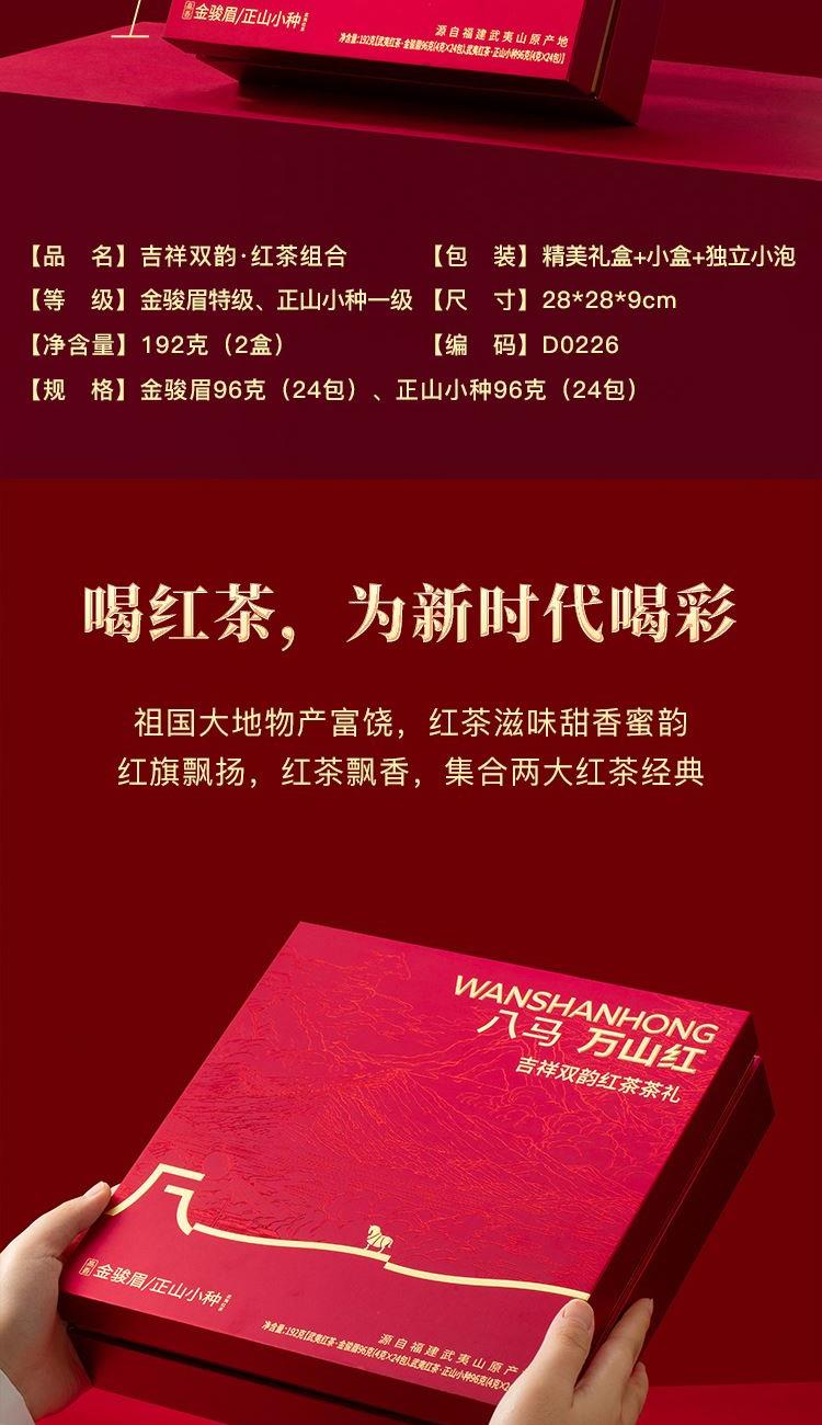 八马吉祥双韵红茶192克+单罐悦享装正山小种250克组合装