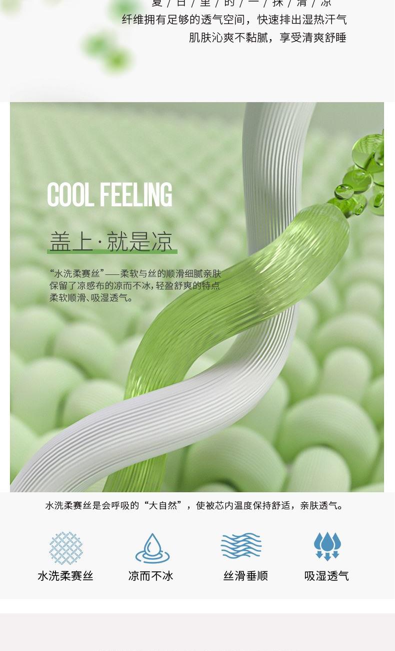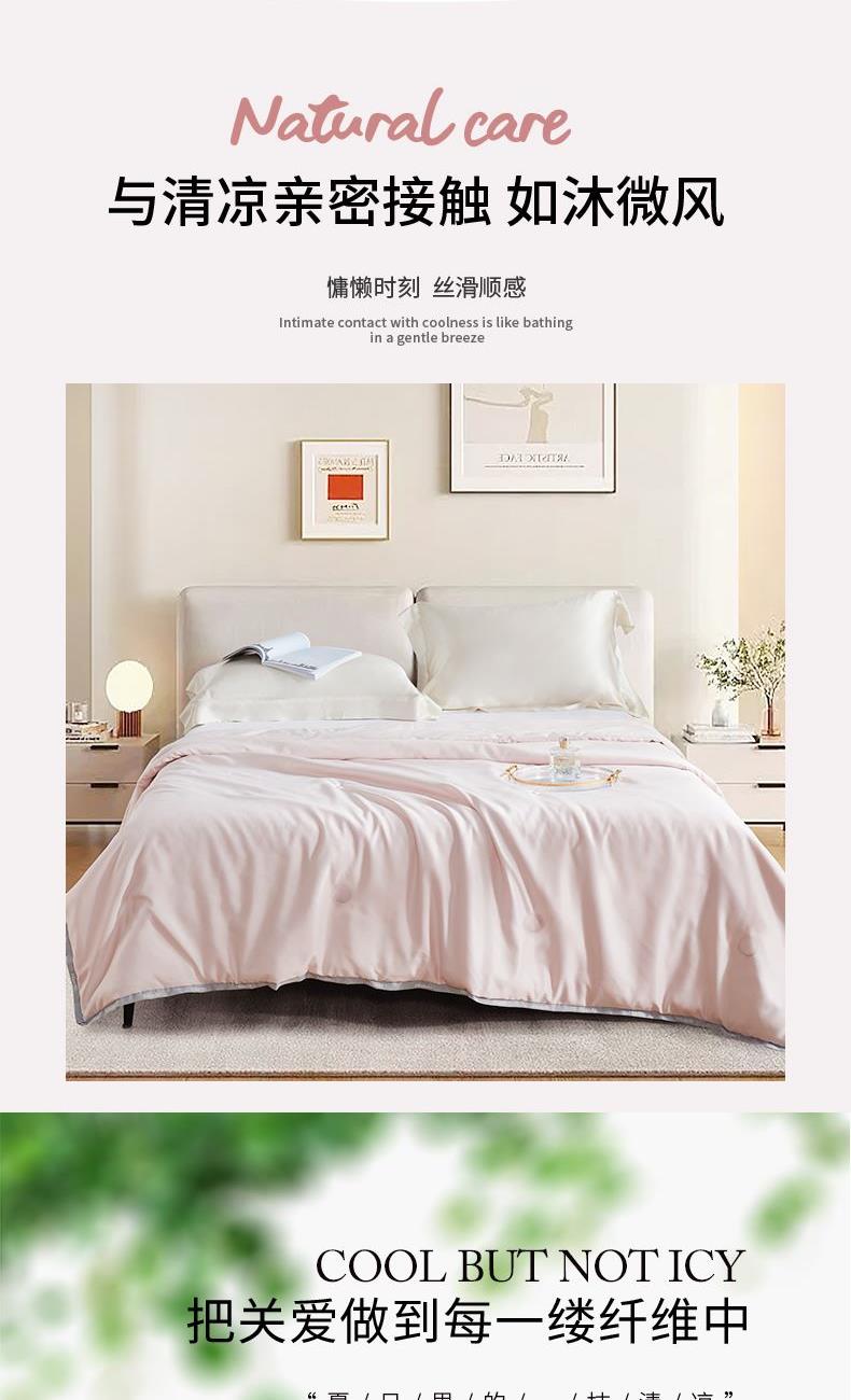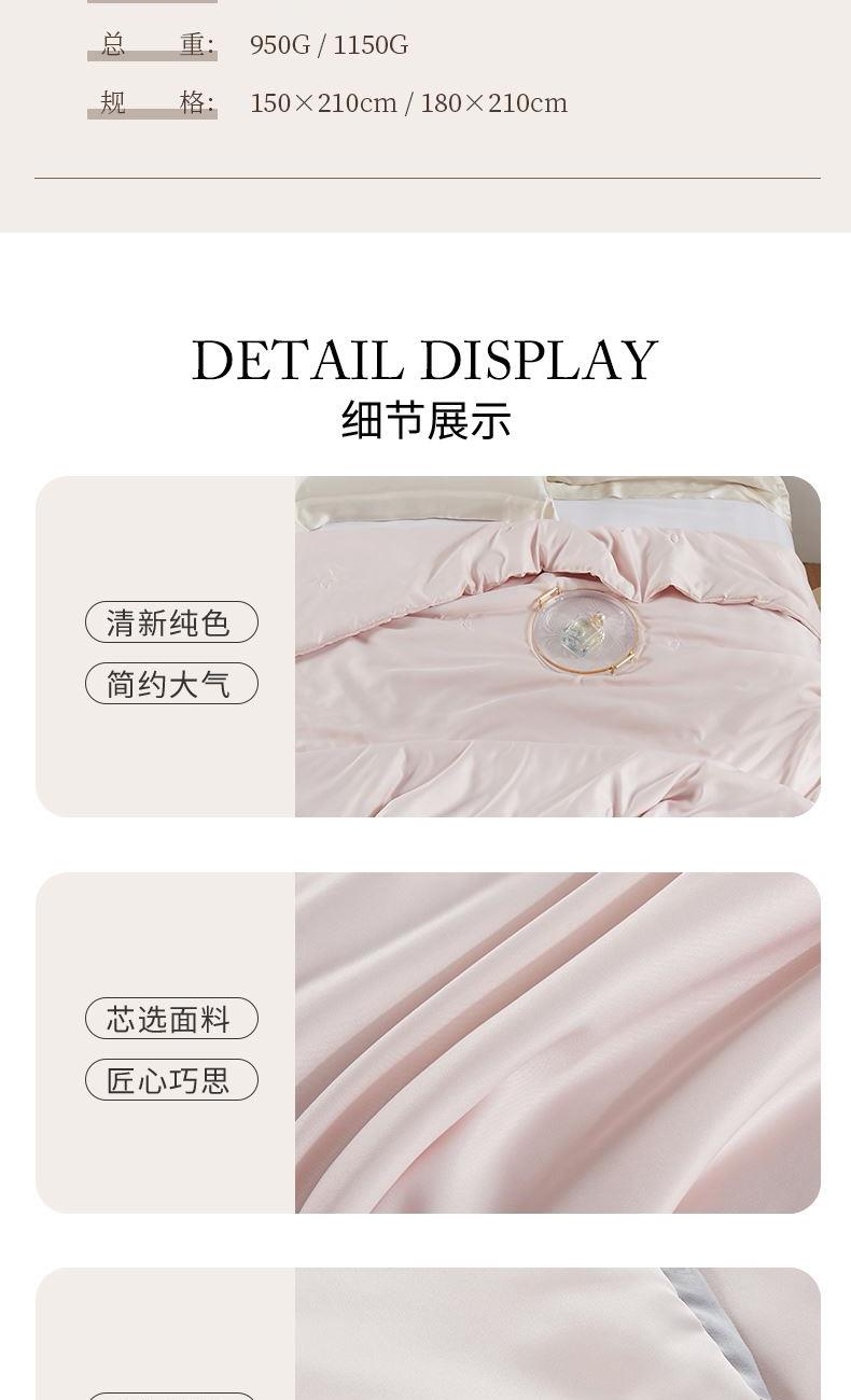 货 号:JB-1316 规 格:150*210cm 面 料:水洗柔赛丝 填 充:柔肤聚酯纤维 总 重:950G 1.一触即知的温柔!柔赛丝面料细腻垂顺,柔肤聚酯纤维蓬松有弹性,被子如蚕茧般包裹全身,轻盈暖透无压迫感; 2.会呼吸的柔肤被!水洗柔赛丝透气吸湿,柔肤纤维锁温不厚重,秋冬盖不干燥,春夏搭不闷汗,四季舒爽如春。 3.肌肤挚爱的温柔陷阱!柔赛丝触感似真丝,柔肤纤维填充均匀保暖,裸睡级安心质感,每晚都像被云朵拥抱。