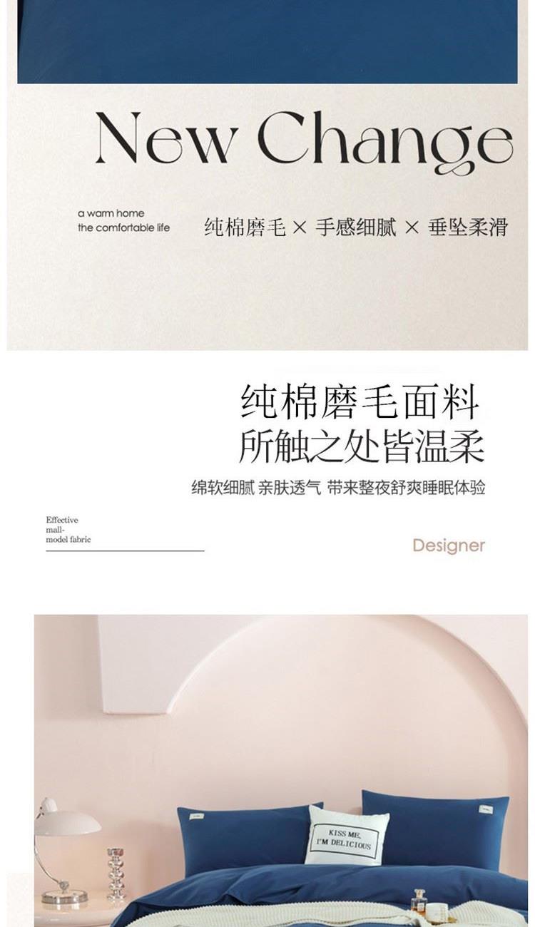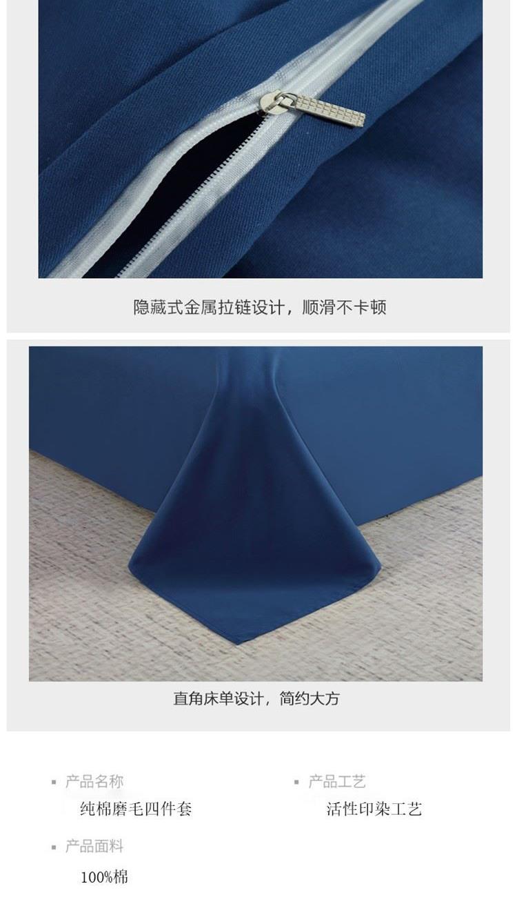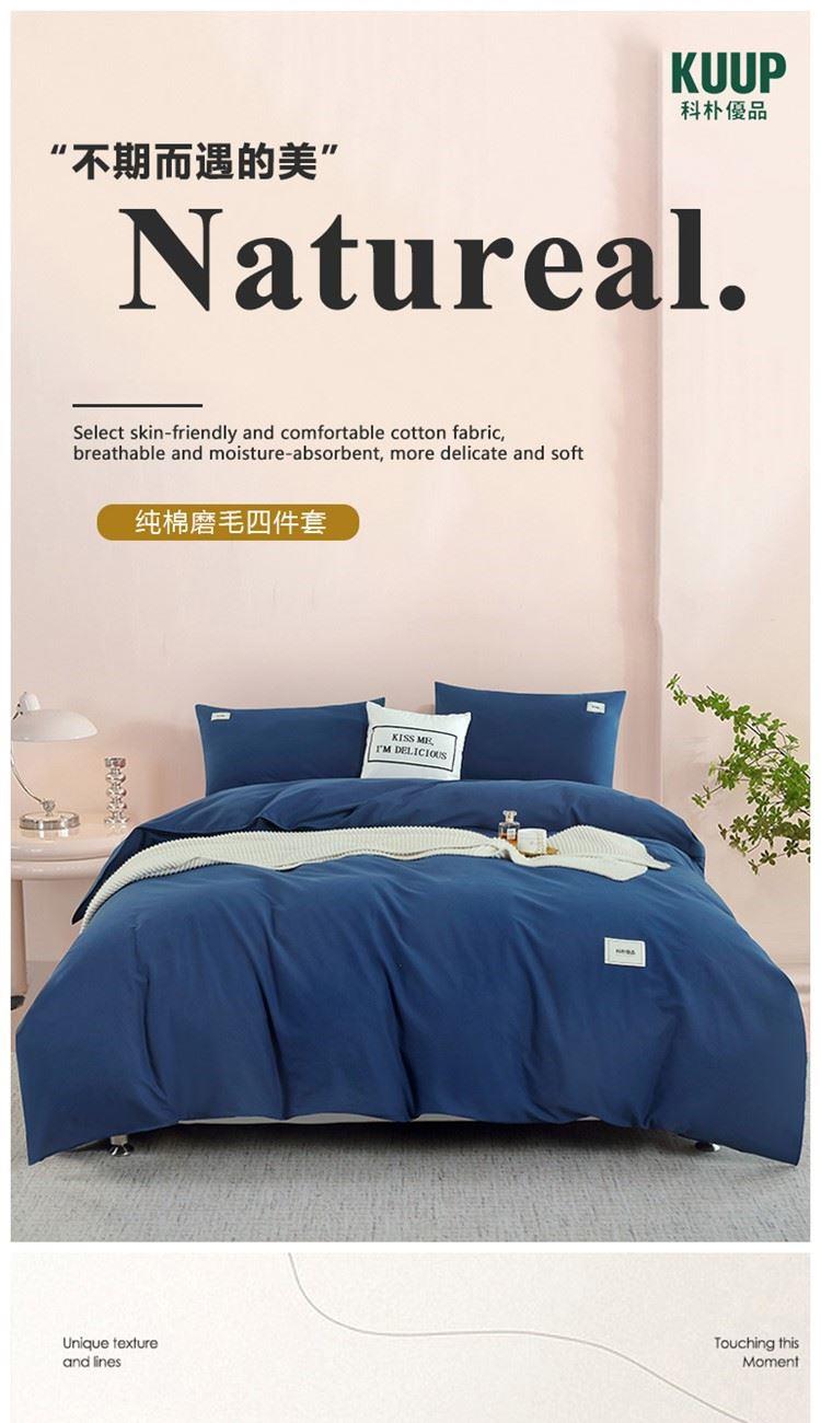科朴优品KUUP纯棉磨毛四件套-深蓝适合1.8M、1.7M床