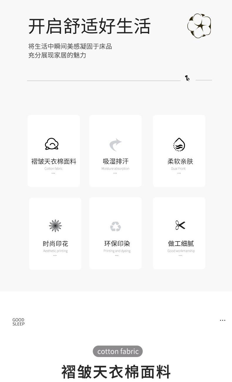 规 格:被套-200×230(±2)cm 床单-245×250(±2)cm 枕套-48×74(±1)cm×2 面 料:天衣棉麻 花 型:至朴