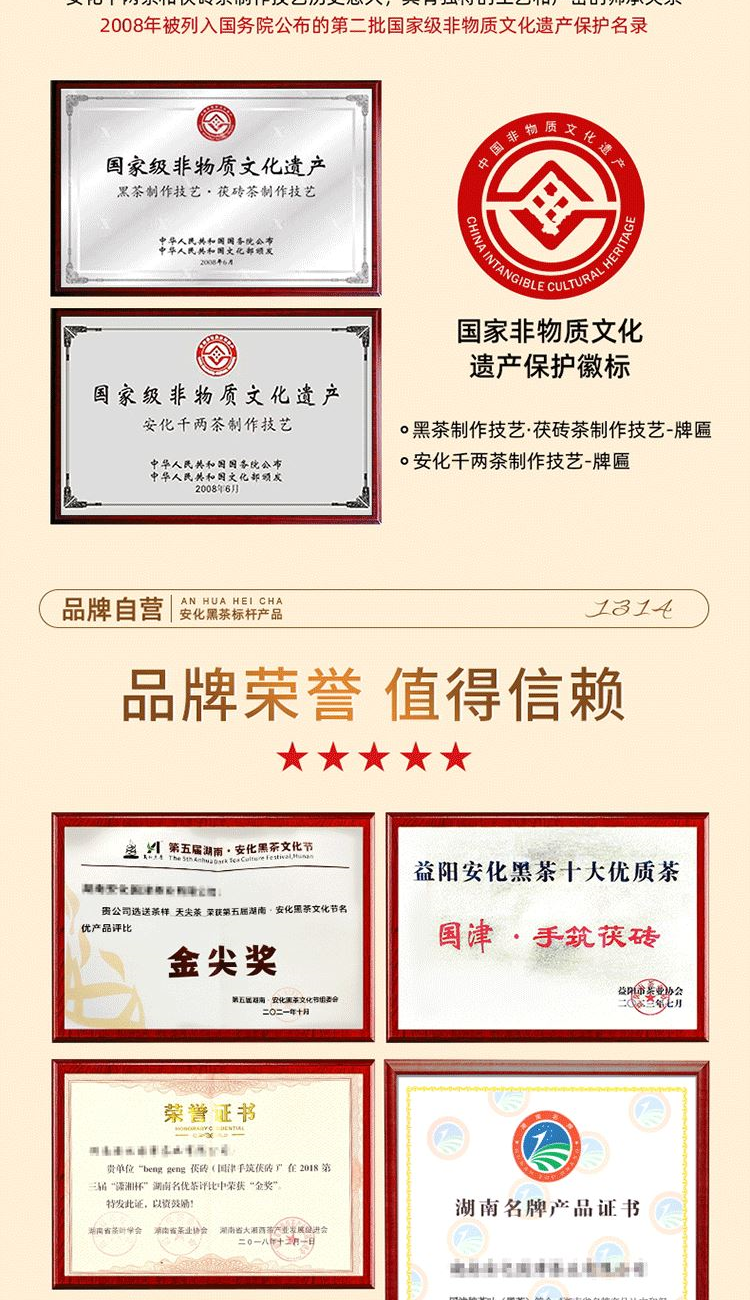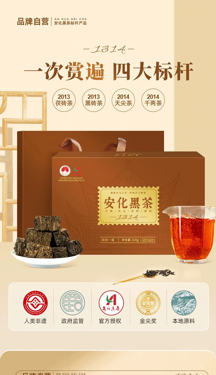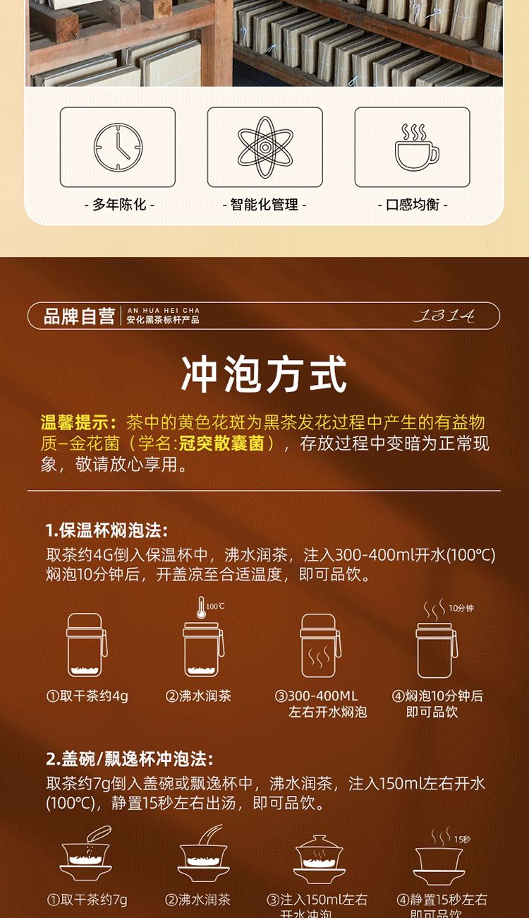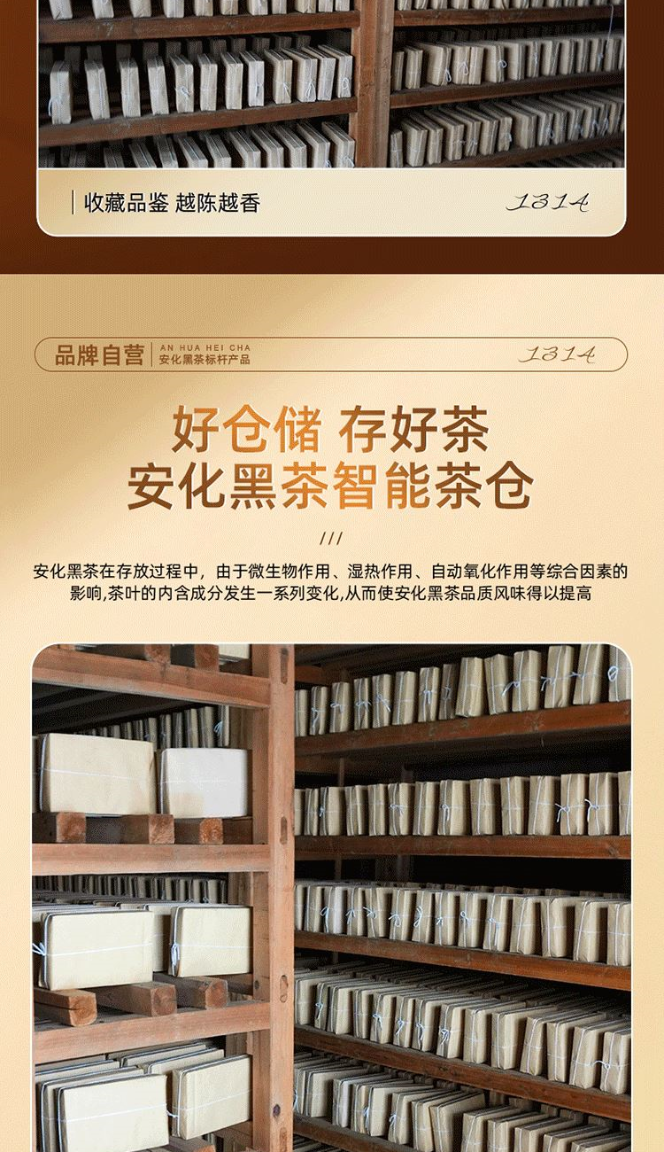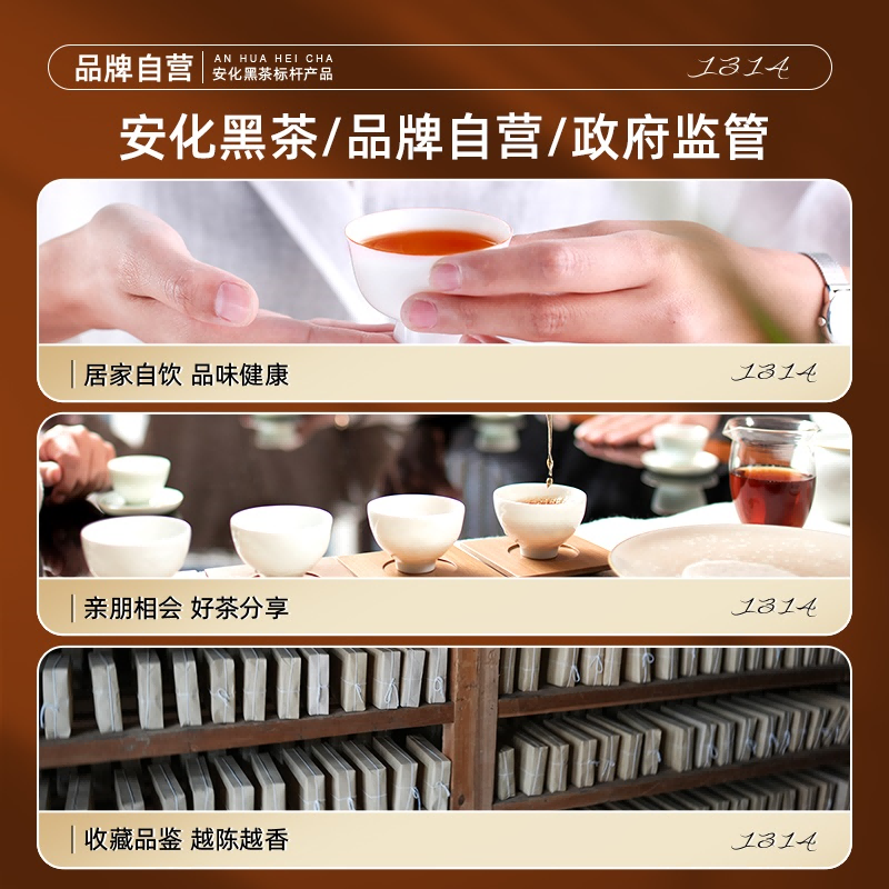 ③黑砖:13年安化核心产区陈年老料,含适量细嫩茶梗,入口爽滑回甘,适口性强;