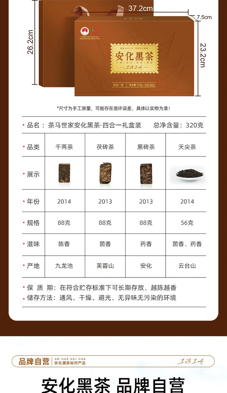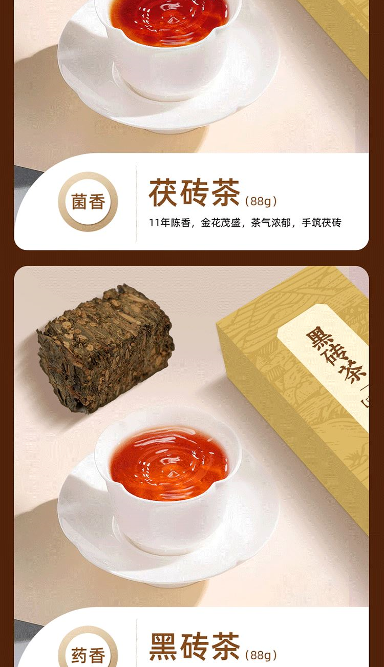 包装清单:茯砖88g*1,千两88g*1,黑砖88g*1,