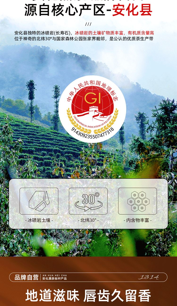 1、源自安化黑茶核心产区生态茶园,平均海拔800米以上,自然环境优,适合茶树生长。