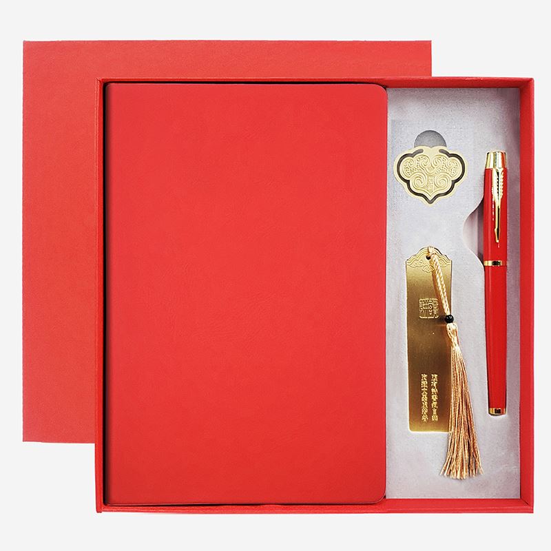 礼盒配置: 1、A5硬皮PU皮笔记本 2、古铜书签; 3、古铜书夹; 4、金属烤漆签字笔; 5、红色包装盒尺寸:227*227*33mm 6、红色手提袋尺寸:270*270*55mm 7、重量:约30kg/箱