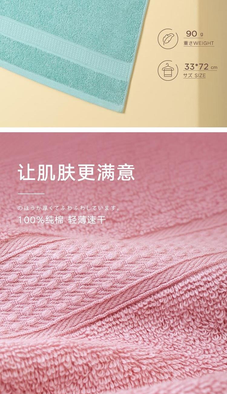 A类 · 婴幼儿可用标准,通过瑞士SGS机构检测认证 安全环保:无甲醛、无芳香胺、零添加荧光剂,PH安全值 优选新疆长绒棉,经过11道精梳工艺,精制而成 2倍吸水,3倍耐用,不脱色不掉毛,娇嫩肌肤专用 包装采用进口食品级材质,可降解回收;防潮防尘,使用便捷 日本原创设计,東川株式会社专研空气云织®巾类织造技术