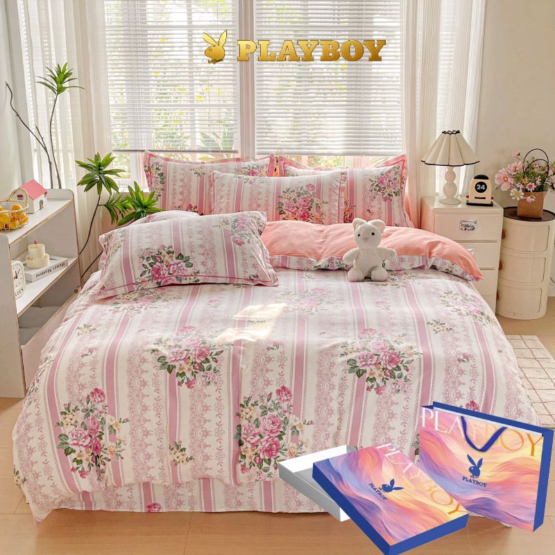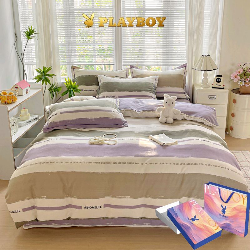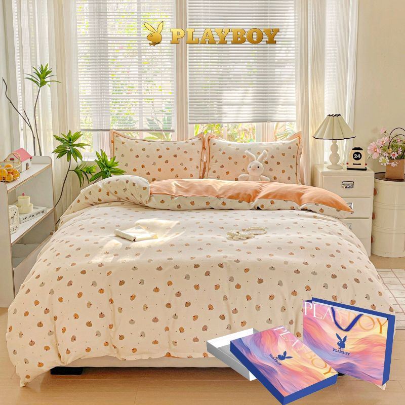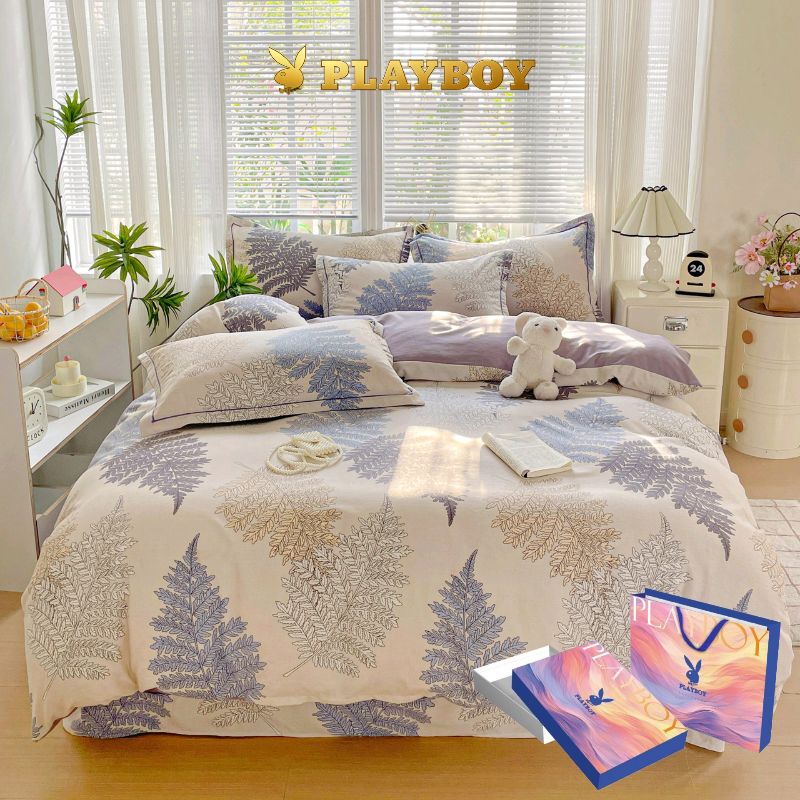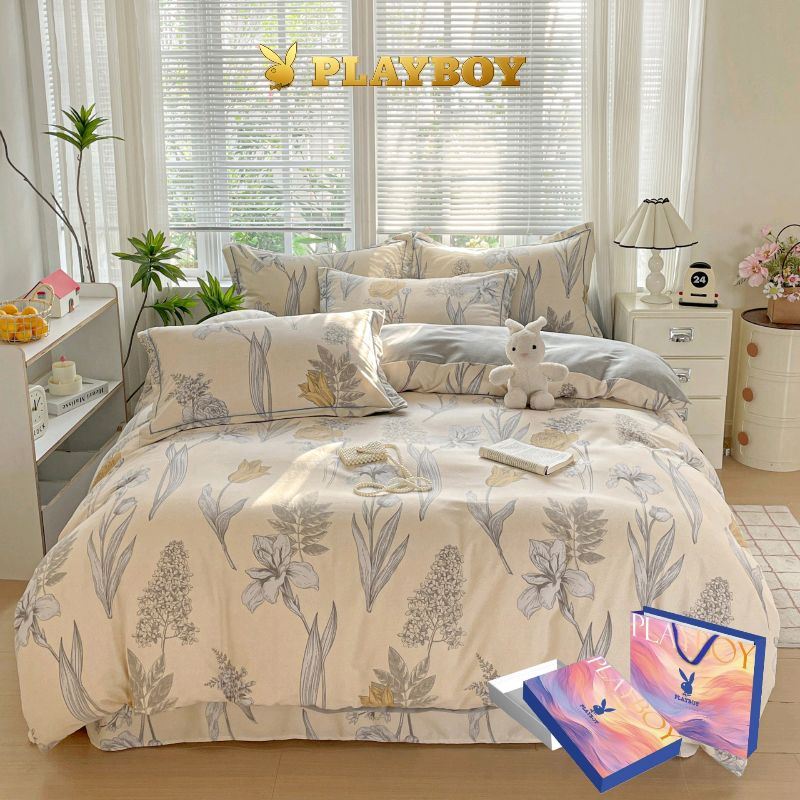 花花公子-家纺-全棉加厚磨毛印花四件套-岸边蒲草灰