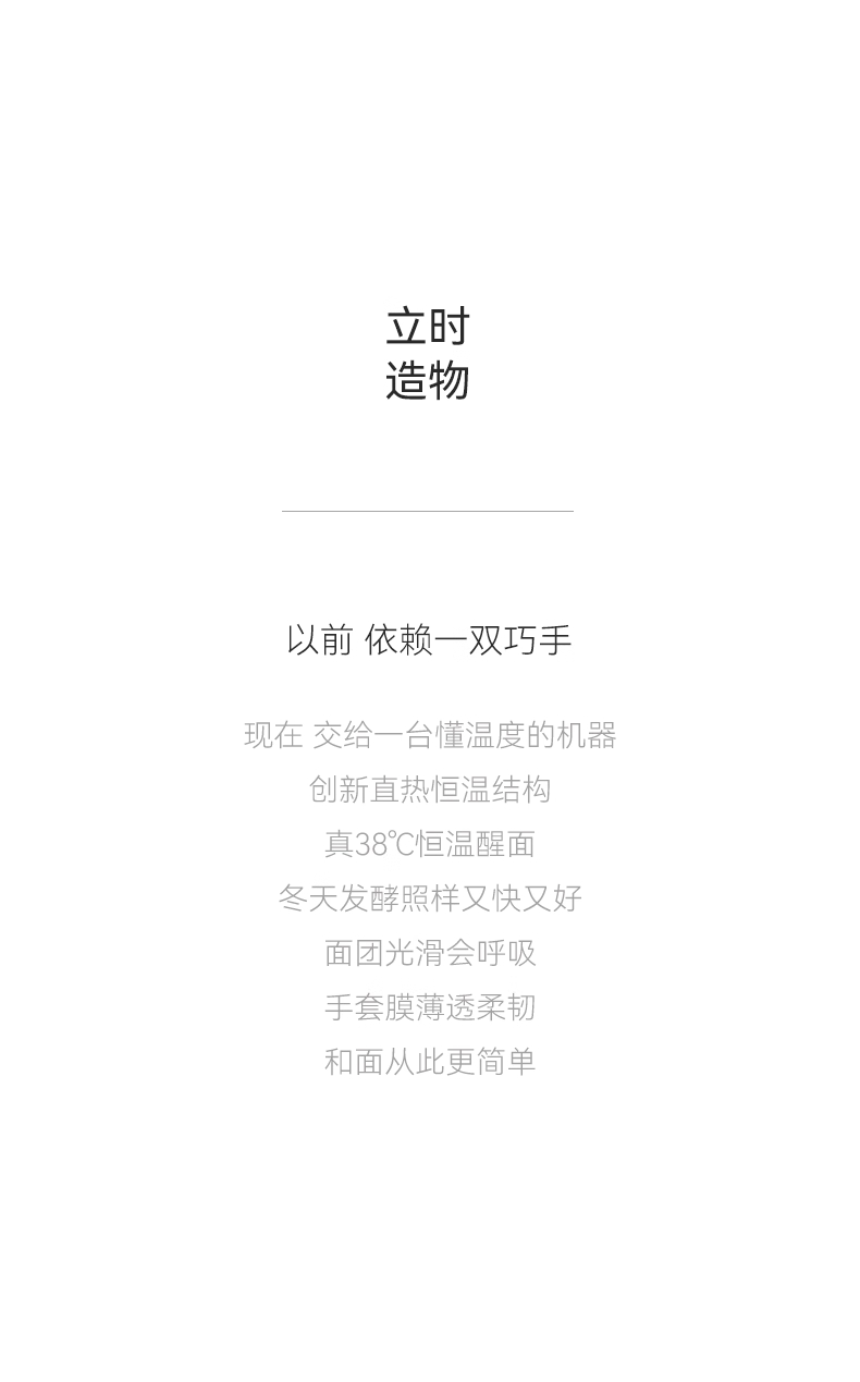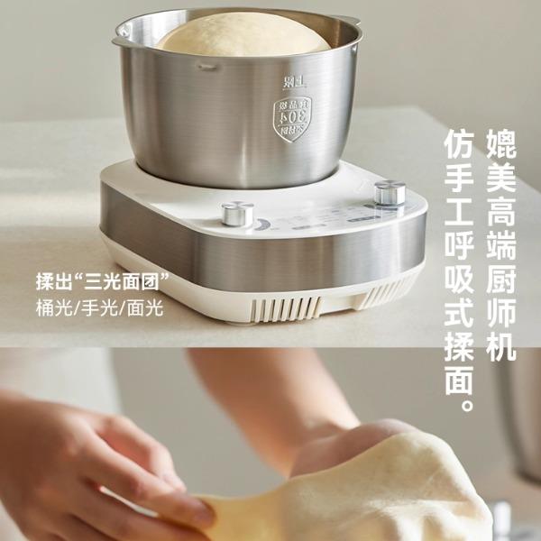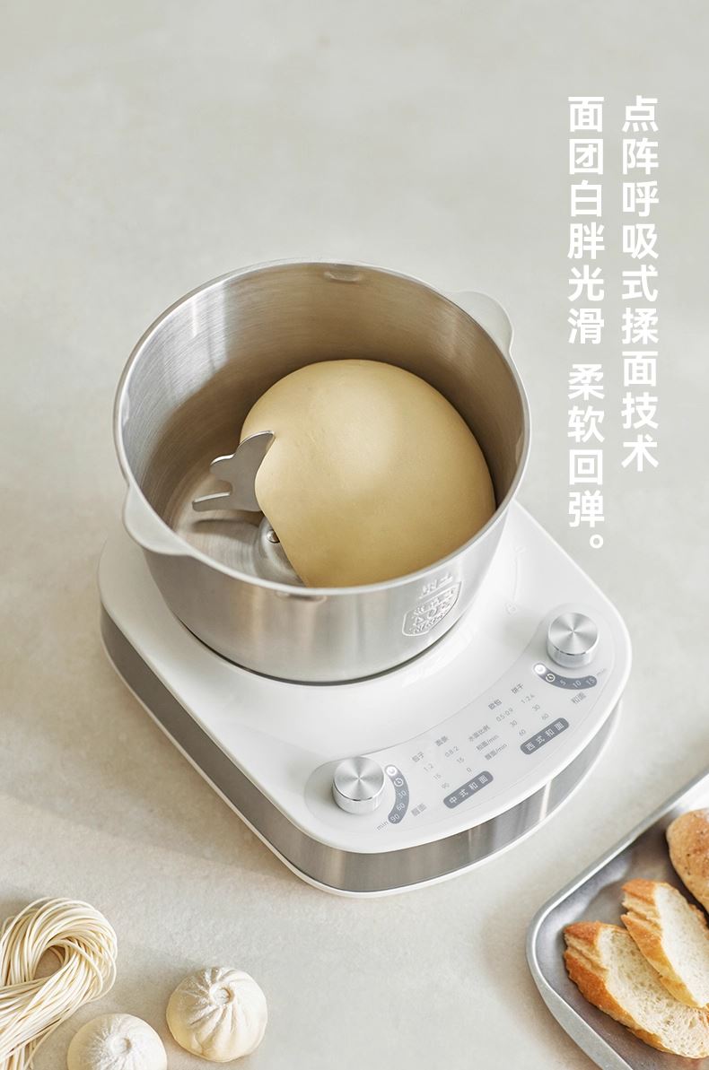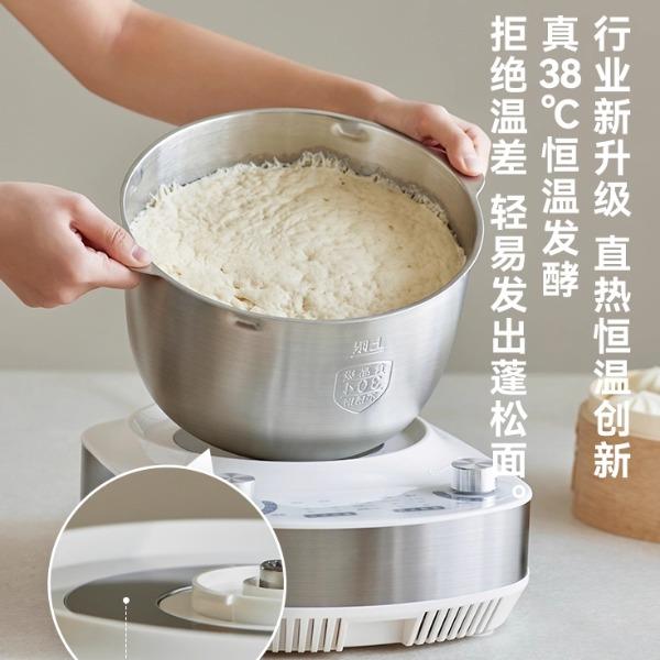 容量:5L 和面/醒面功率:200W/25W 产品尺寸:250*325*280mm 包装尺寸:348*330*308mm 条码 : 6977735712963 1. 创新直热恒温结构,外露式发热盘,真38°C恒温醒面,冬 天也快速发酵到位 2. 自带配方教程,多功能面板操作 3. S型不锈钢搅拌刀,点阵呼吸式揉面技术 4. 轻松拆卸,易清洗
