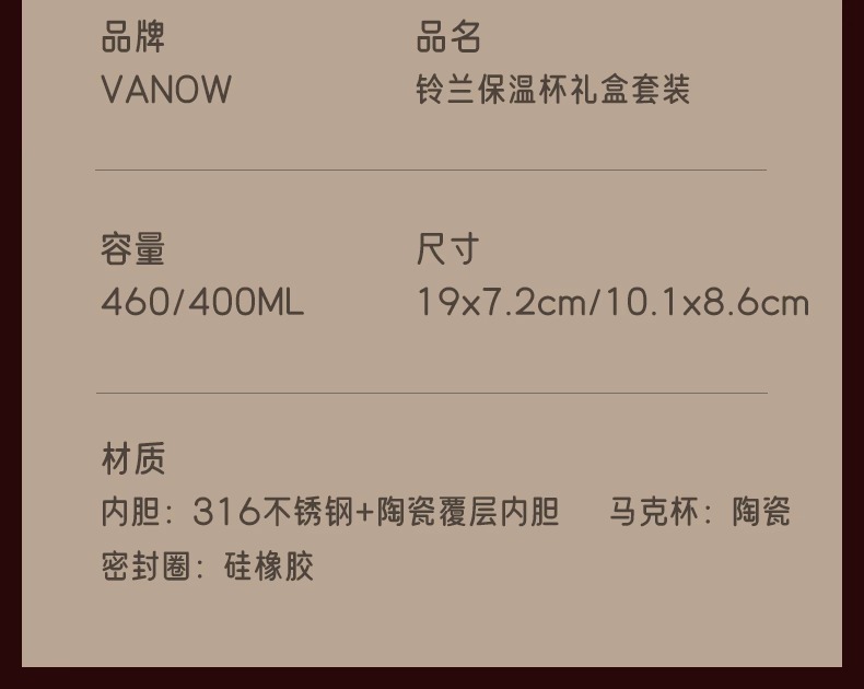 Vanow铃兰数显保温杯礼盒套装VO-LL46TZ
