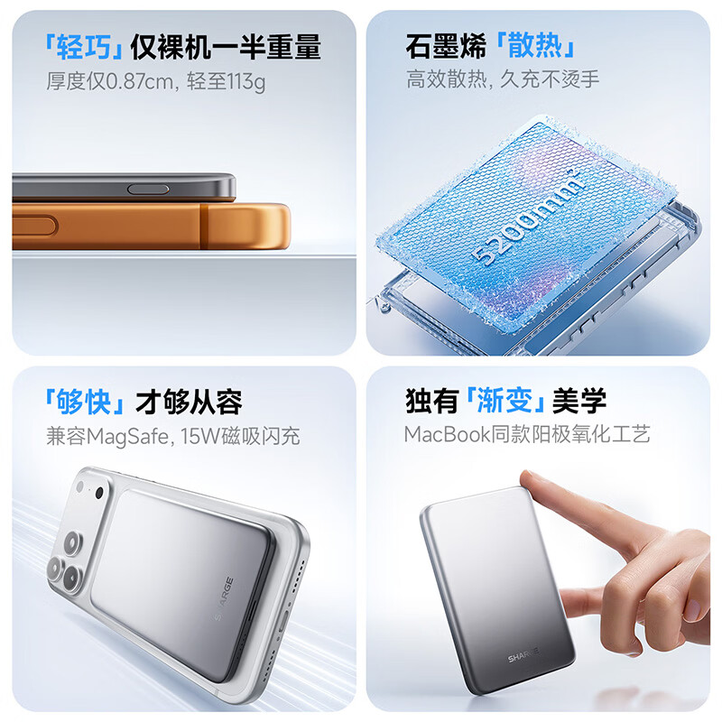 闪极-超薄磁吸移动电源-常规版5000mAh
