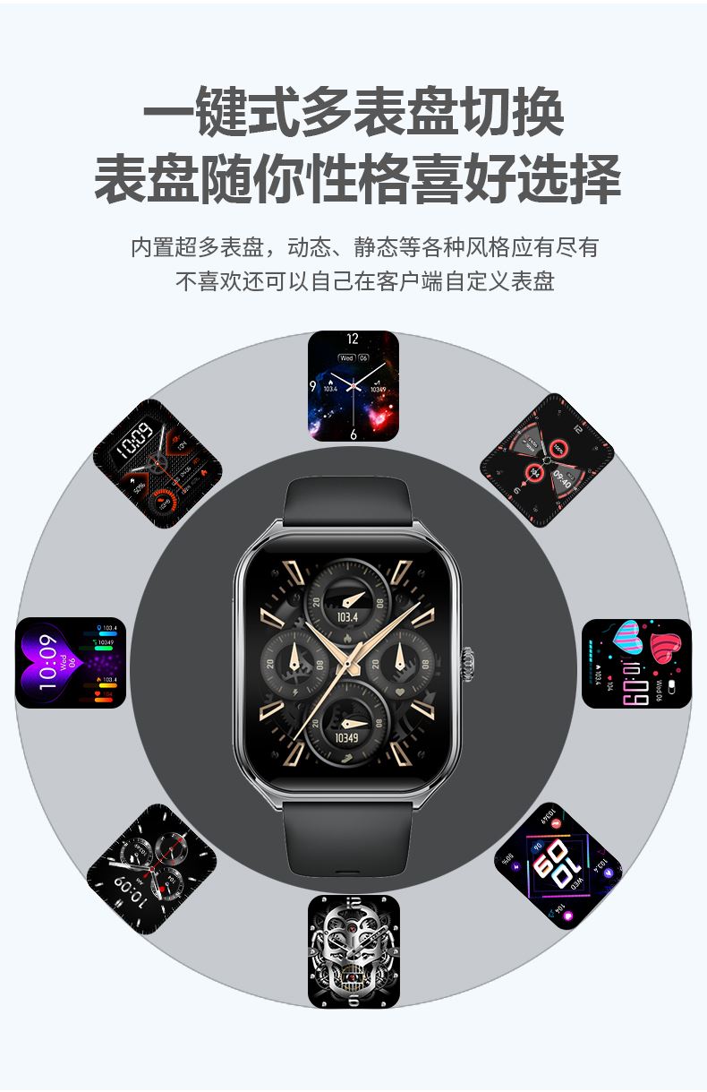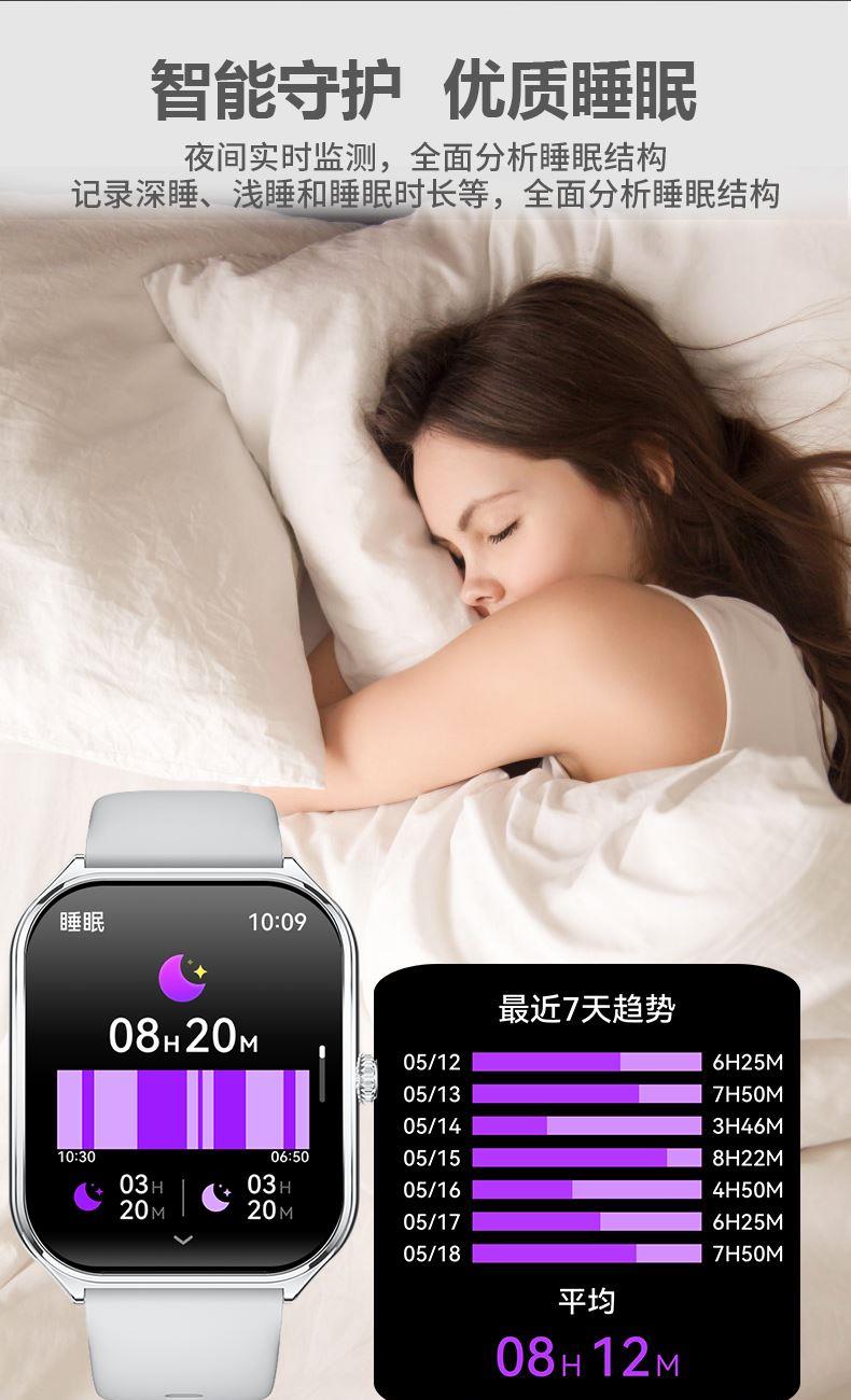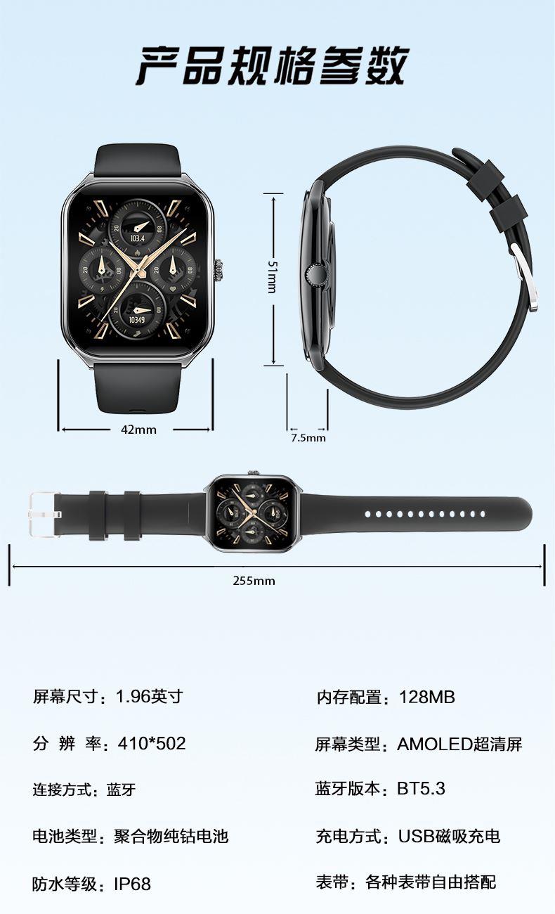 CPU:AB5691 128M 屏幕尺寸:1.952寸,410*502 AMOLED弧面高清屏 使用时间:2-5天 充电方式:磁吸座充 电池容量:200mAh 智能手表尺寸(mm):451*42*7.6mm 产品材质:上盖-玻璃,机身-锌合金,表带-防静电硅胶/真皮 产品净重: APP:FitCloudPro 防水等级:IP68 产品清单:手表+USB电源线+合格证+硅胶表带+皮表带+说明书+包装盒 1.952寸,410*502 AMOLED弧面高清屏、电池200mAh、心率/血氧监测、蓝牙通话、蓝牙音乐、睡眠监测、来电接听、短信提醒、社交APP消息提醒(支持微信,QQ)、闹钟提醒、久坐提醒、多种运动、翻腕亮屏、寻找手环、远程拍照、勿扰模式、表盘自定义、云端后台海量表盘、本地语音功能控制、AI表盘(根据描述,生成表盘图片)、支付宝、文心一言、NFC、AI问答、女性健康、音乐控制、天气等;