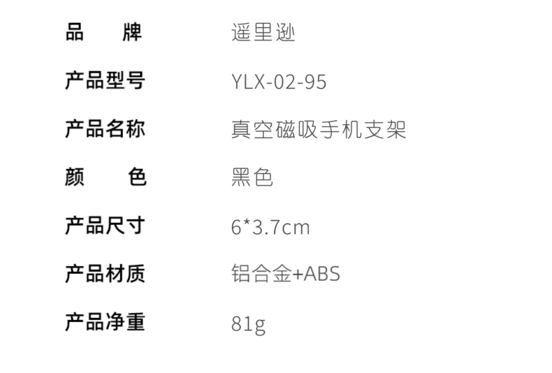 遥里逊真空磁吸车载手机支架YLX-02-95