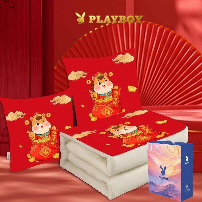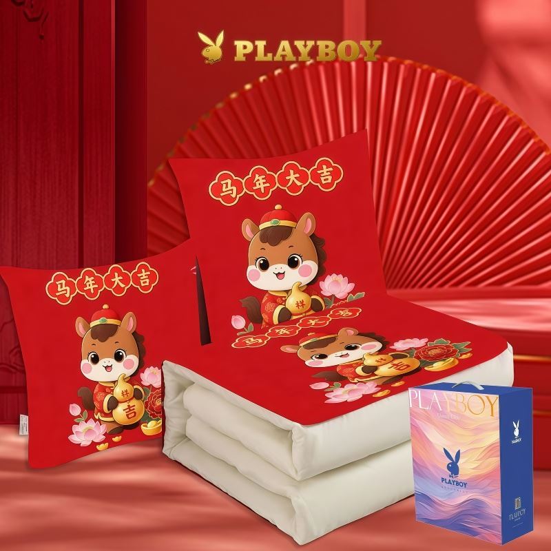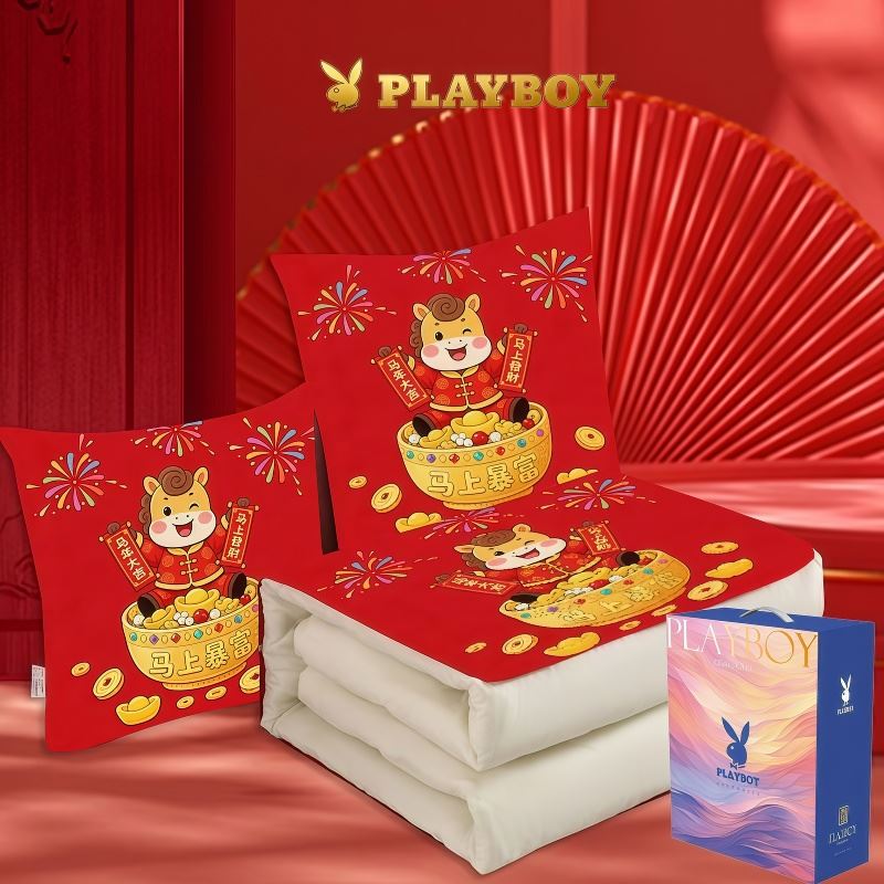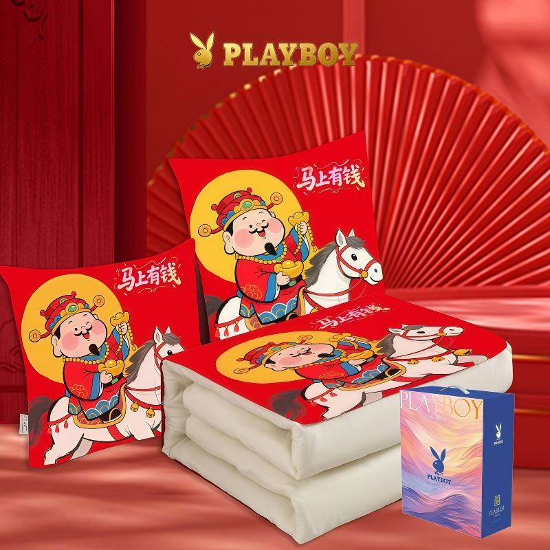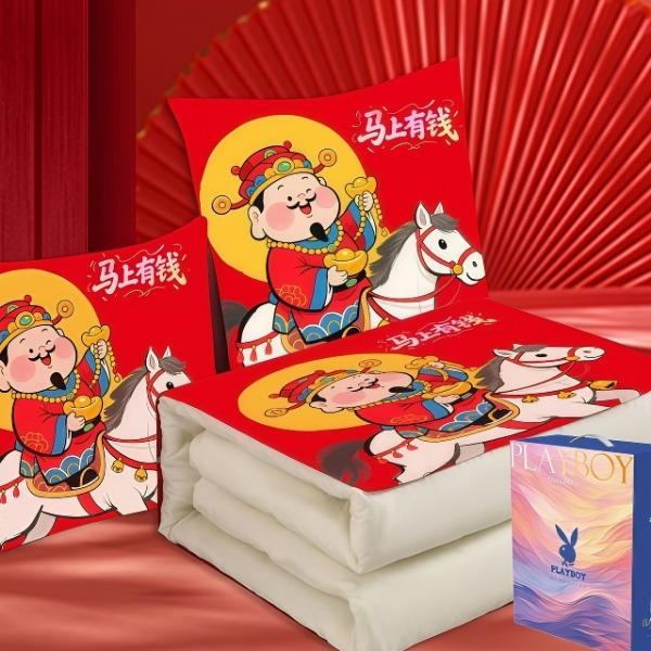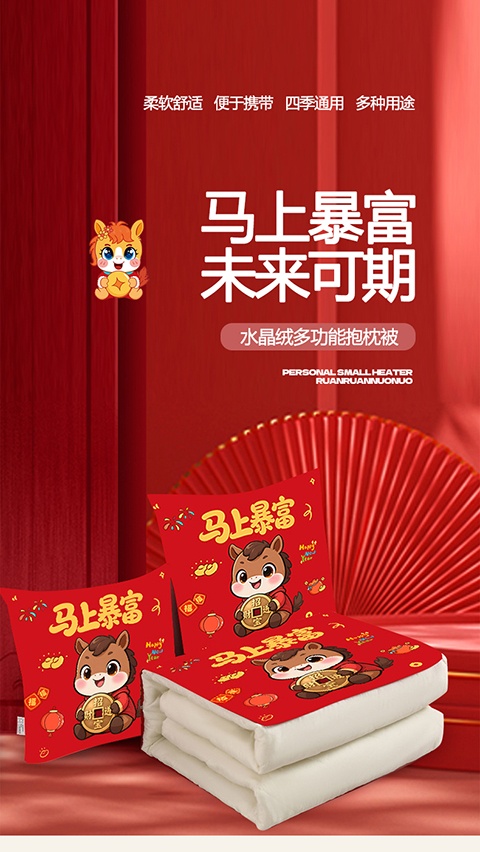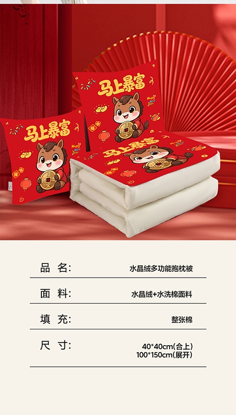 花花公子-家纺-开门红水晶绒多功能抱枕被-马年大吉-马年暴富