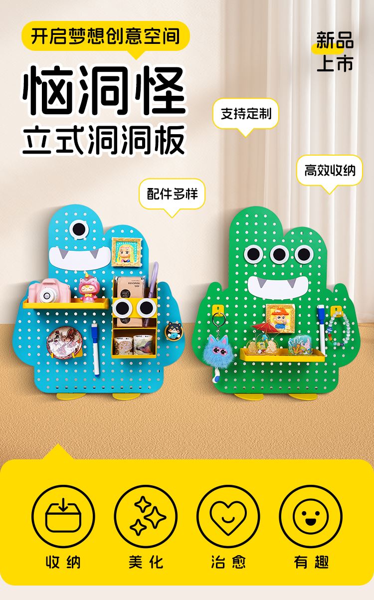 贪吃猫文创桌面收纳学生办公室立式A款置物架洞洞板