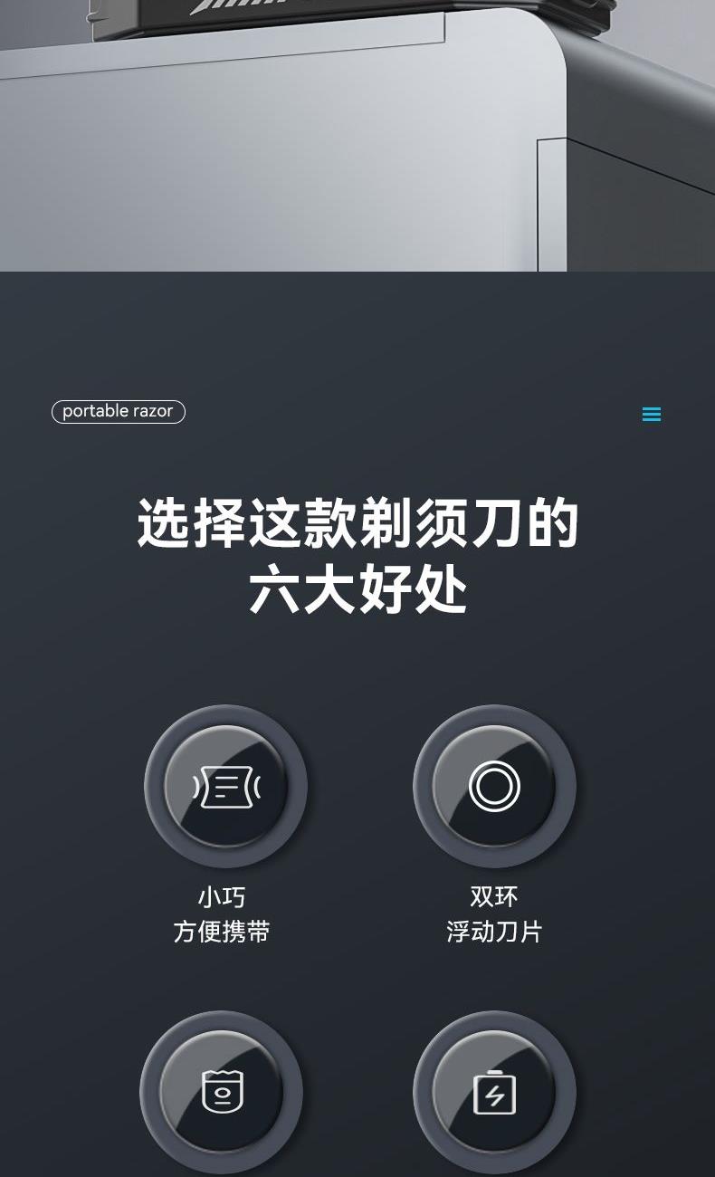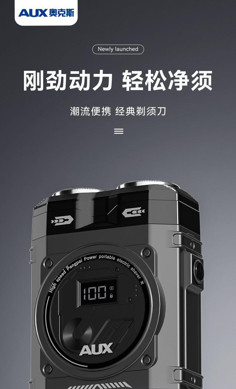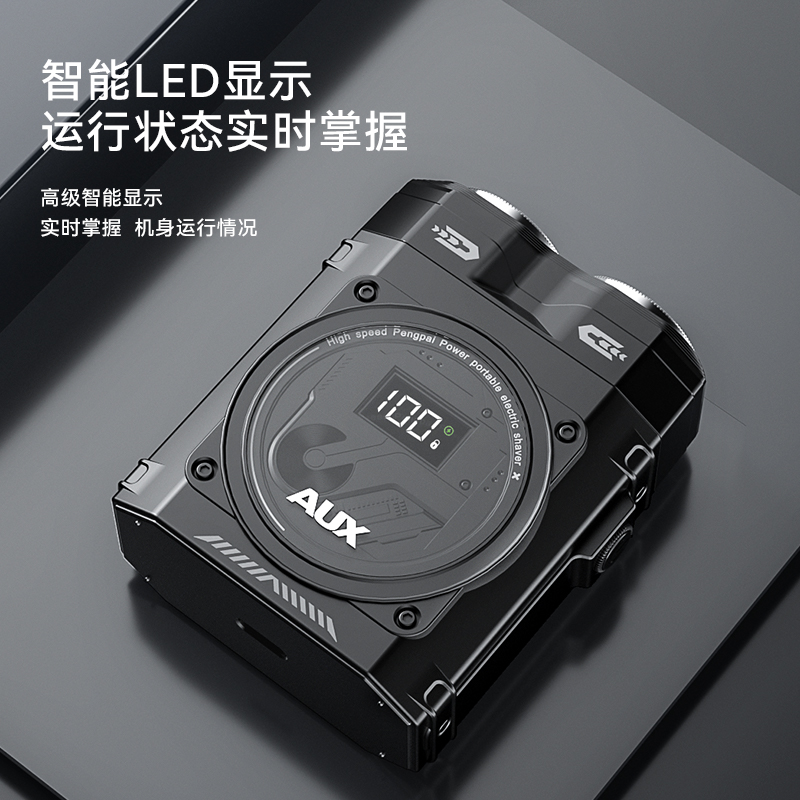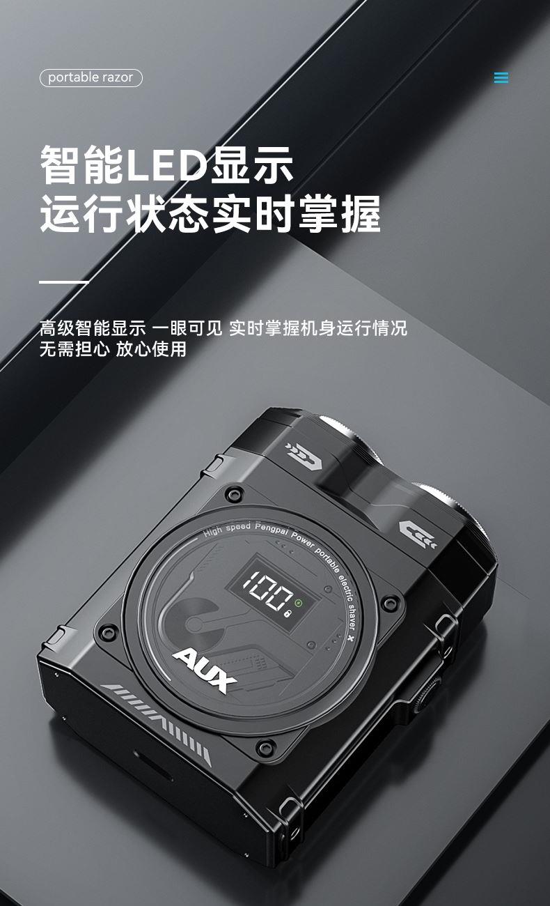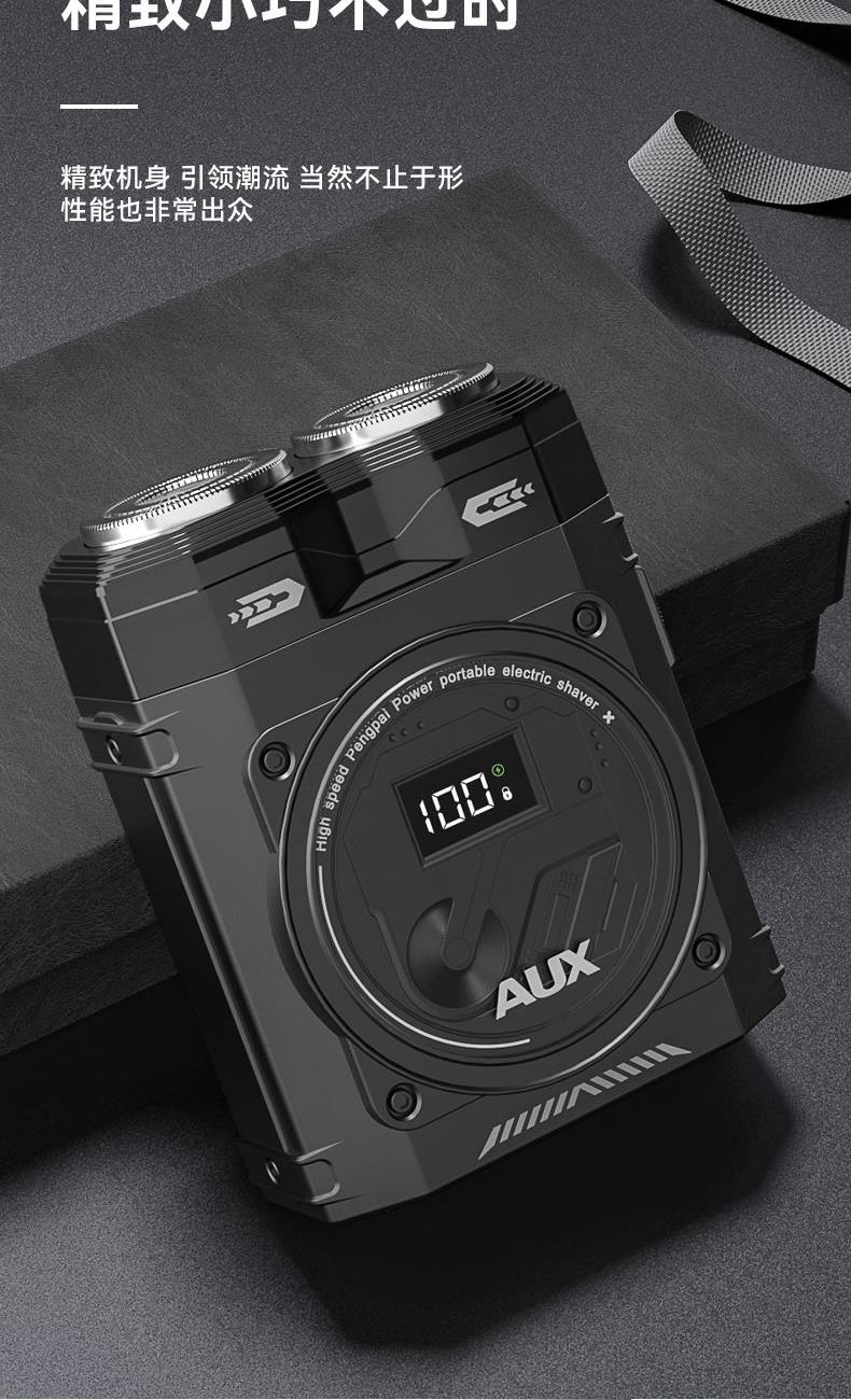 额定电压:3.7V⎓ 额定功率:5W 额定输入:5V~1A 电池容量:400mAh 防水等级:IPX6 包装清单:剃须刀,说明书,Type-C充电线,清洁刷 迷你便携,单手可握 双环浮动刀网,双倍提升进须量 TYPE-C快充,60天长效续航 IPX6级防水,机身随心洗 刀头磁吸设计,灵活好拆洗