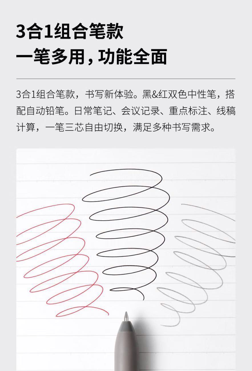 1、3合1组合笔款,中性笔搭配自动铅笔,一笔多用。