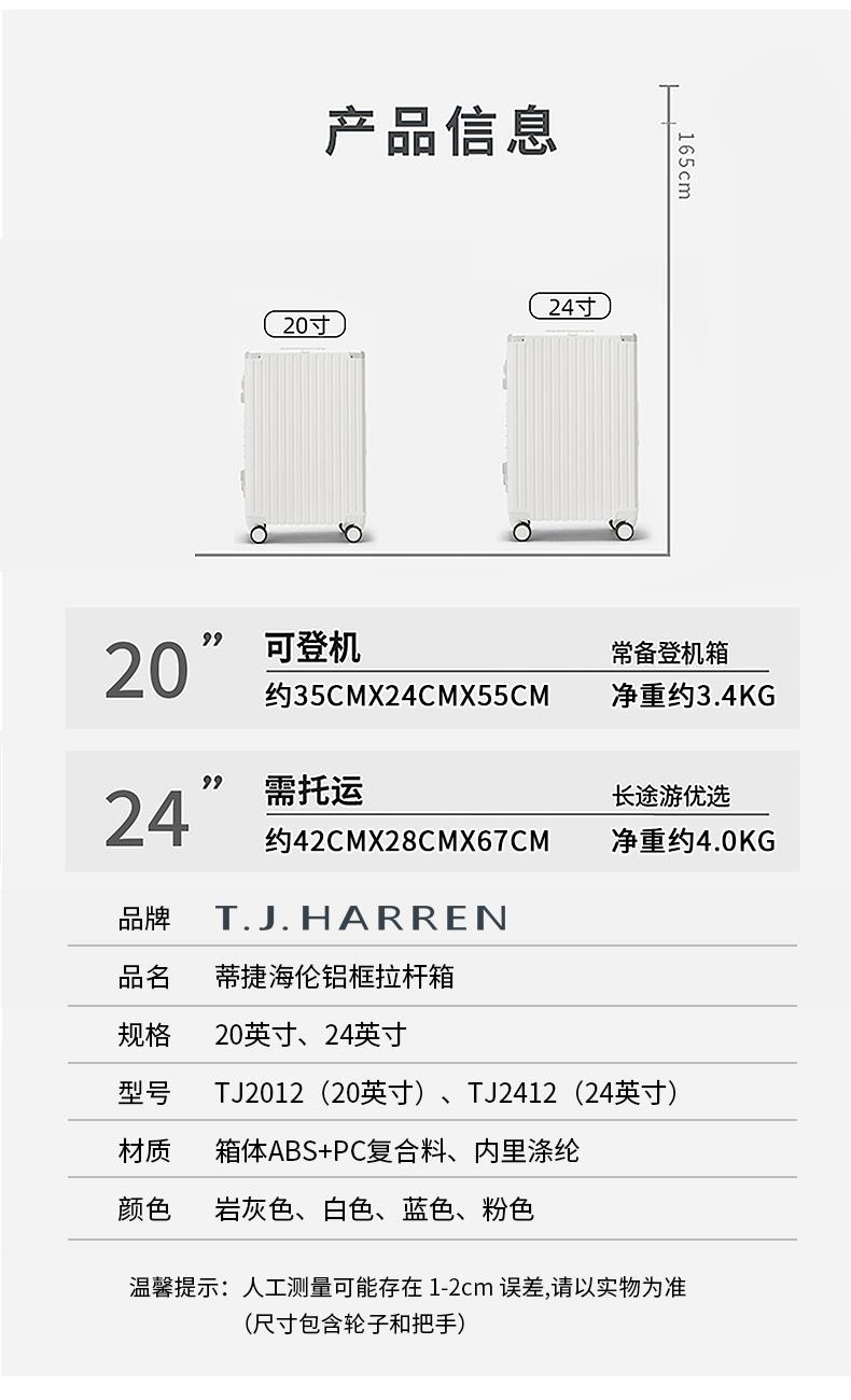 T.J.HARREN/蒂捷海伦铝框拉杆箱20英寸TJ2012 礼品已成功加入PPT!