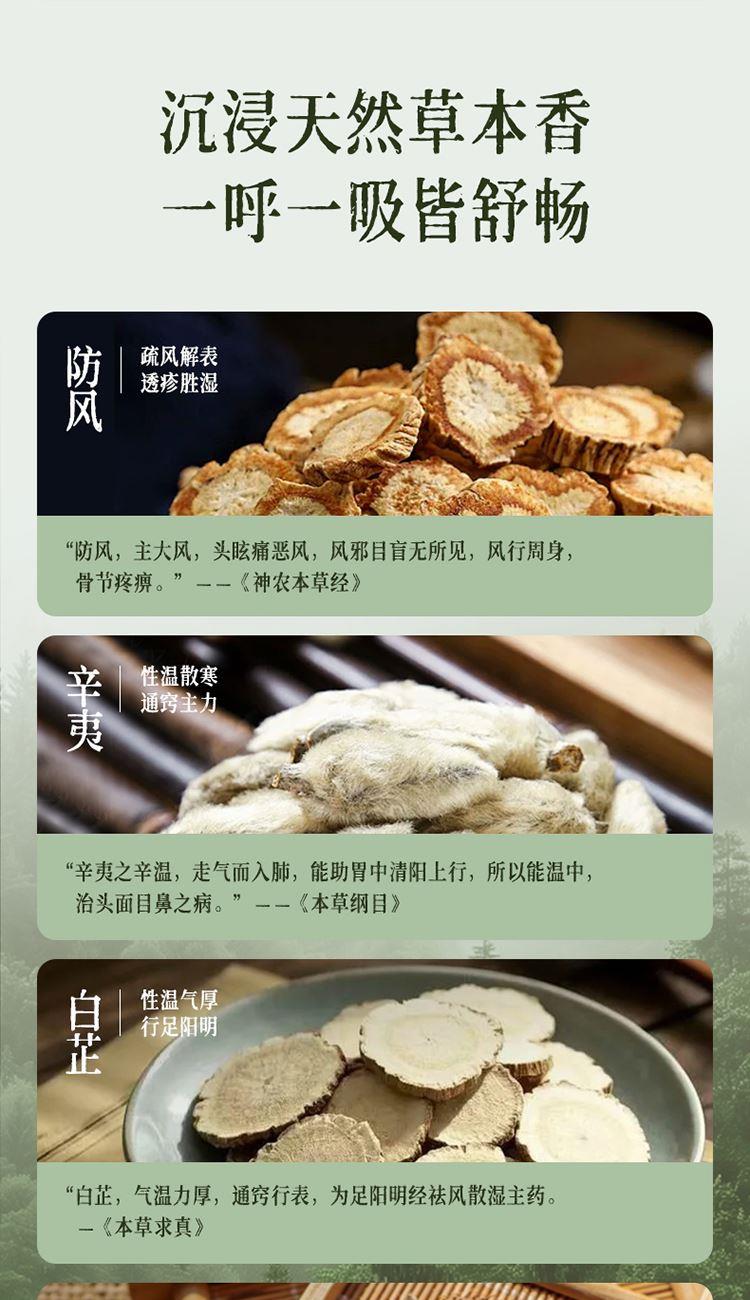 基本特性:内芯选用的是高海拔苦荞麦,除虫处理过,高温烘干,不易生霉生虫;融合添加了辛夷、白芷、防风3种中草药,闻起来淡淡的草药香。