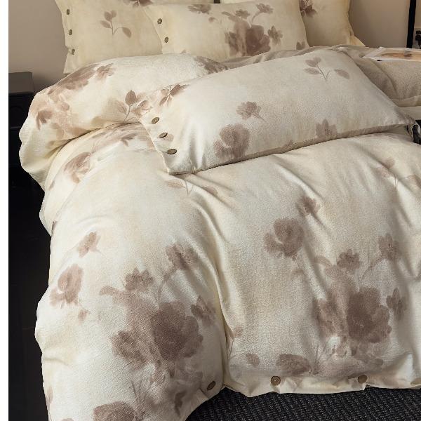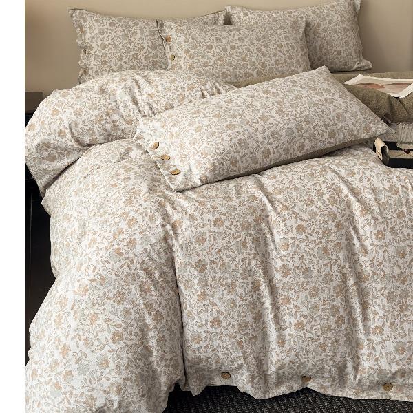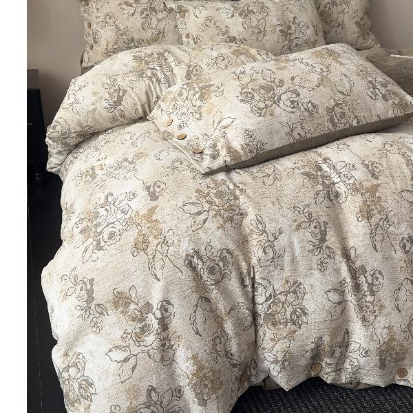 花花公子-家纺-提花原柔麻纽扣春夏秋冬四季款四件套