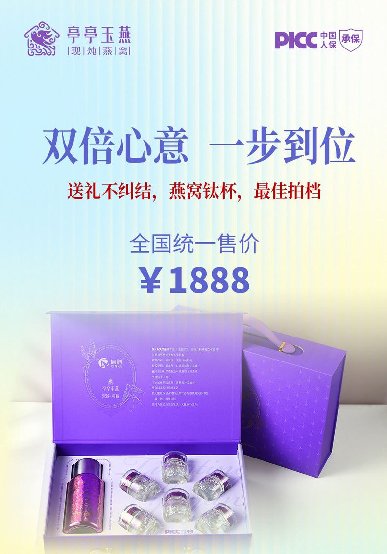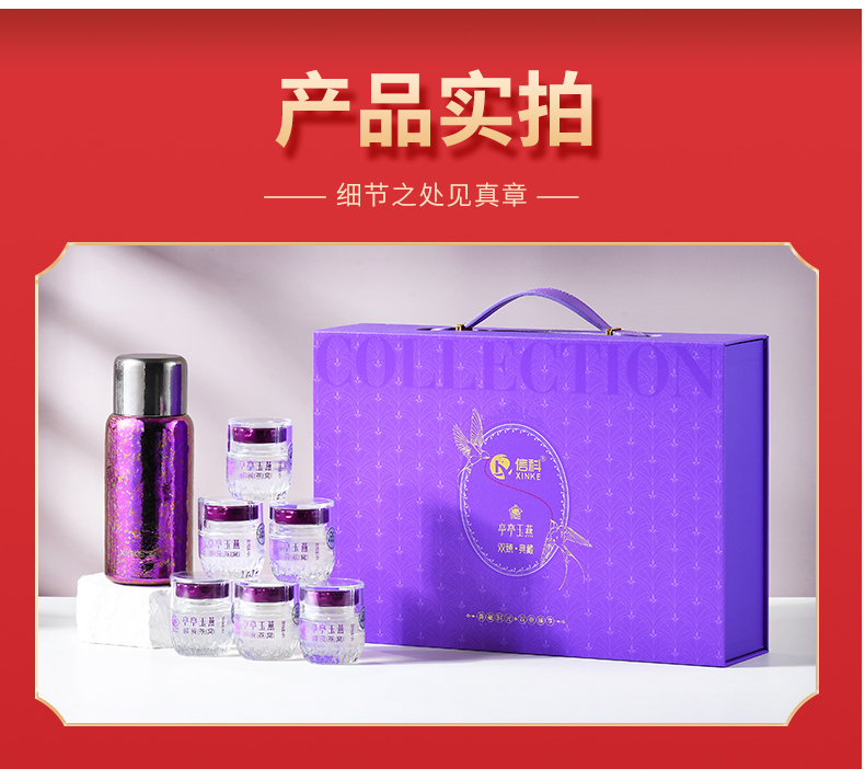 信科商务钛杯 产品容量:450ml 产品型号: XTi-1020 产品材质: 钛 单个尺寸: 7.5*7.5*19.5cm 净 重: 300g 御钛·滋养(钛杯燕窝礼盒) 燕窝净含量:45gx6 固形物含量>40% 信科钛杯450ml*1个