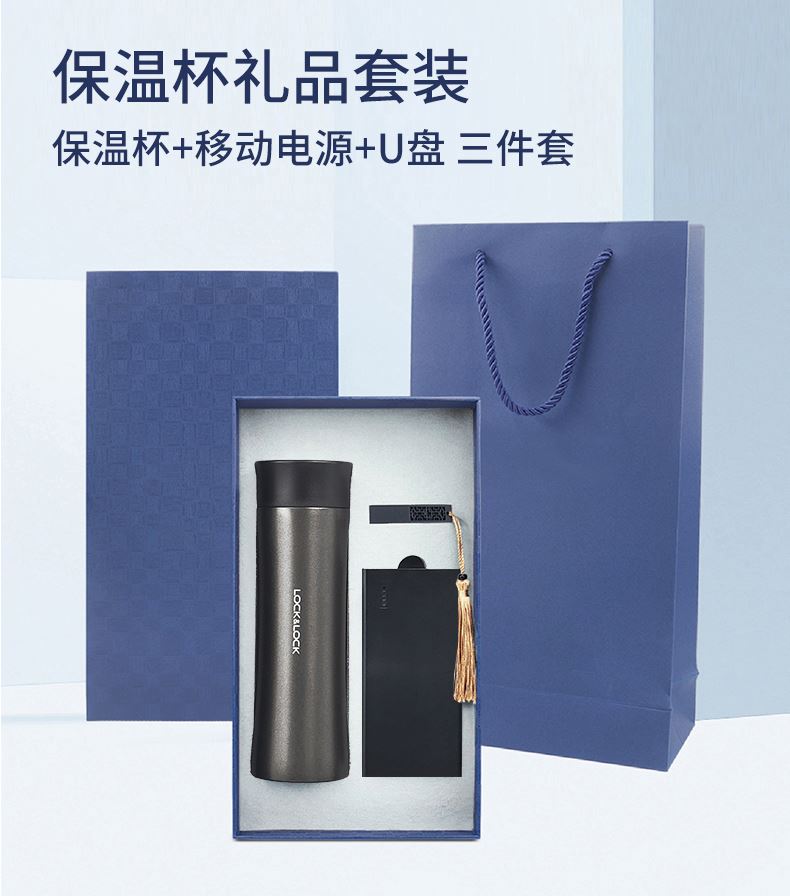 礼盒配置 : 型号:LHC4028 400ML LOCK&LOCK 保温杯 10000mAh移动电源 镂空16GU盘,原装高速芯片 包装盒尺寸:182*326*75mm 手提袋尺寸:192*346*85mm 颜色:黑色 箱重:26kg/箱