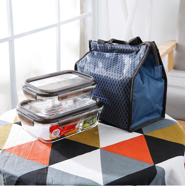 材质:盒盖-PP 盒身-耐热玻璃 产品规格: 不分隔610ml,分隔930ml,保温包 颜色:蓝色