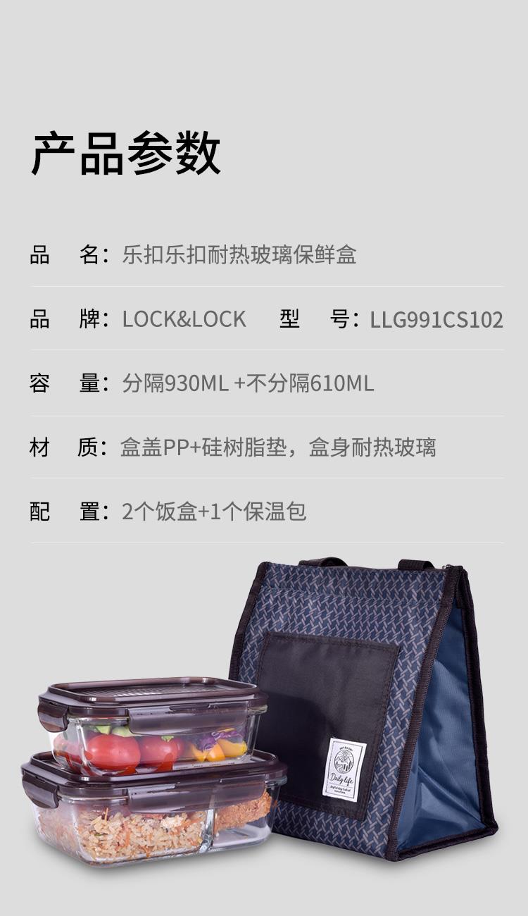 乐扣耐热玻璃保鲜盒便当包套装LLG991CS102