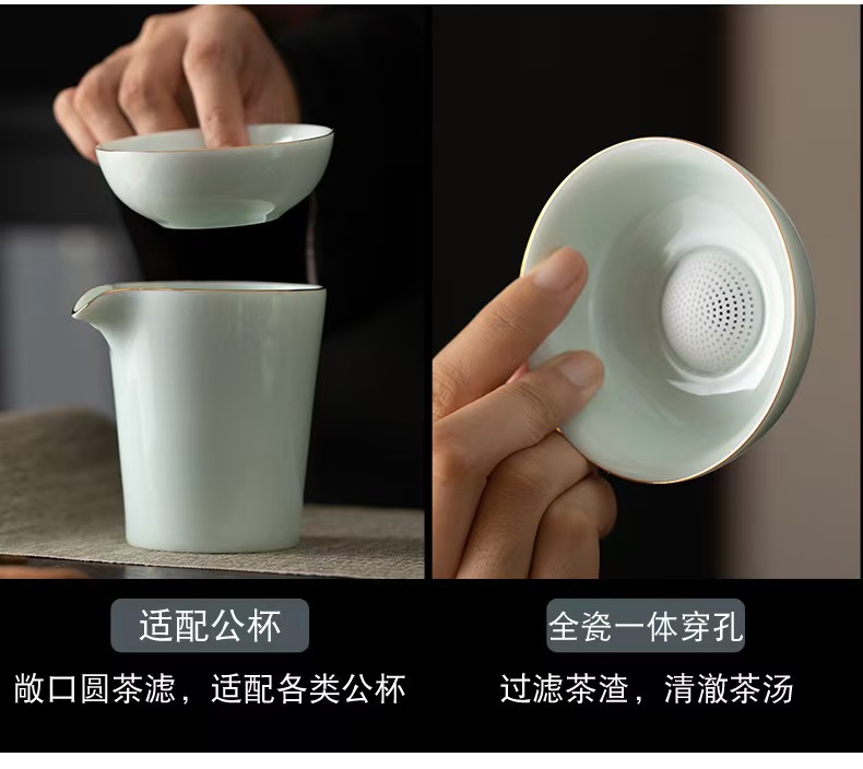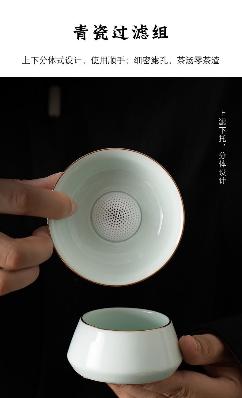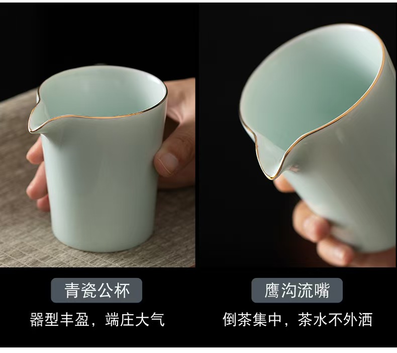 配制:1盖碗6杯 1公道杯1茶托1茶漏 1锦盒 规格: 公道杯:9.2*9.1cm 茶杯:6cm*5cm 盖碗:9.5*9.5cm 材质:青山玉 24K真金 推荐说明:青山玉是青瓷新品,以瓷质细腻,线条明快流畅,色泽纯洁而斑斓著称。青如玉,明如镜,声如磬,描24K真金奢华装饰,被称为瓷器之花。