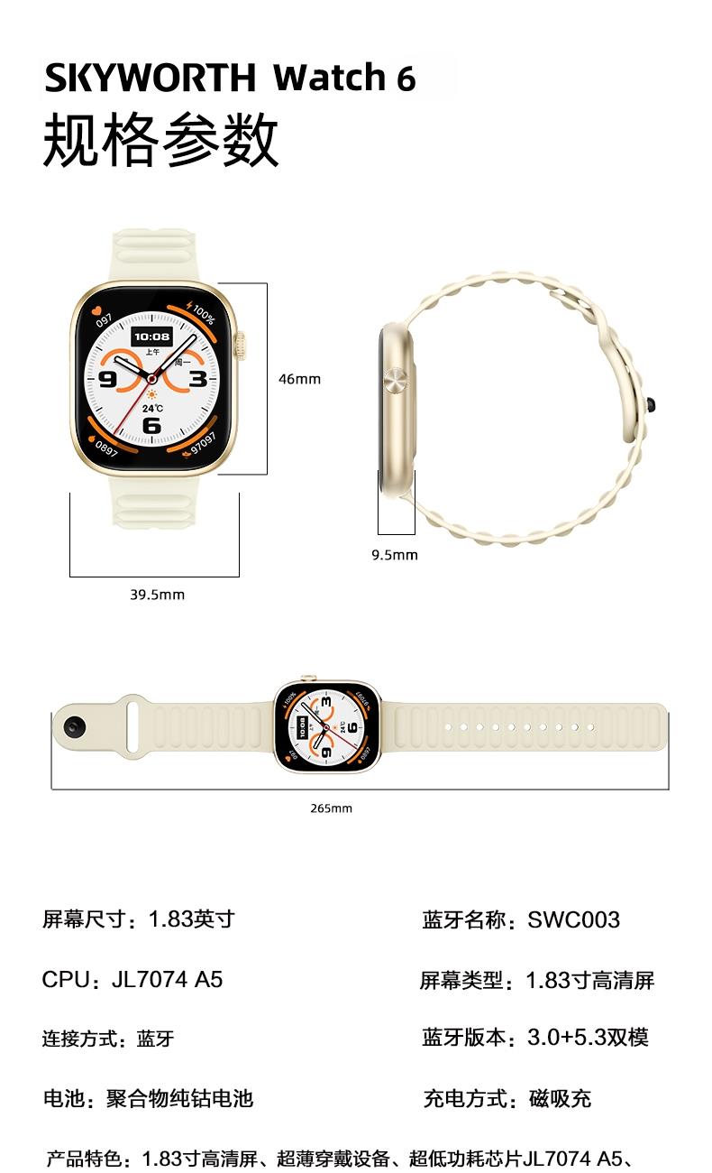 创维运动健康心率蓝牙通话智能手表Watch6