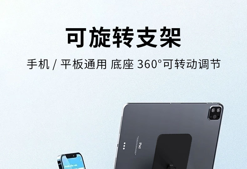 产品规格:15.3*11.2*4.9cm 材 质:铝合金+碳素钢+ABS 颜 色:黑色 产品净重:418g 适用机型:手机 平板