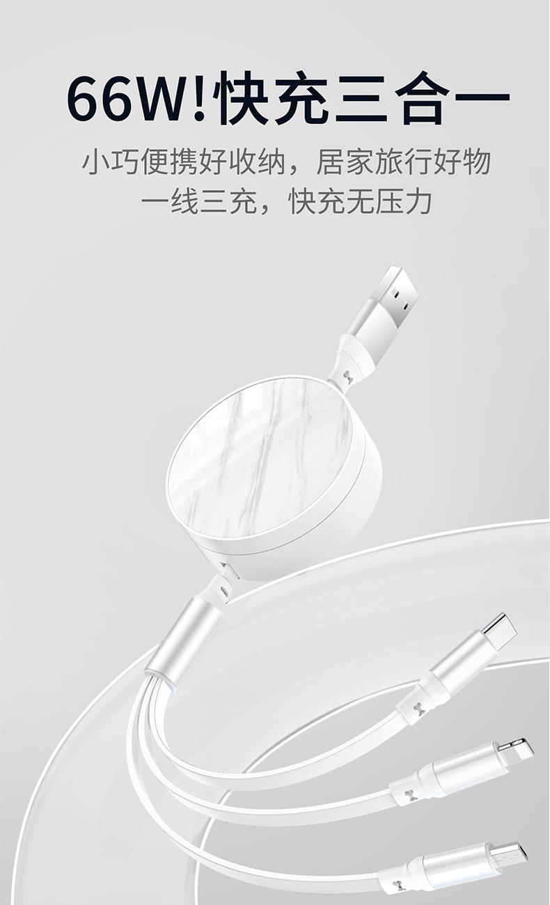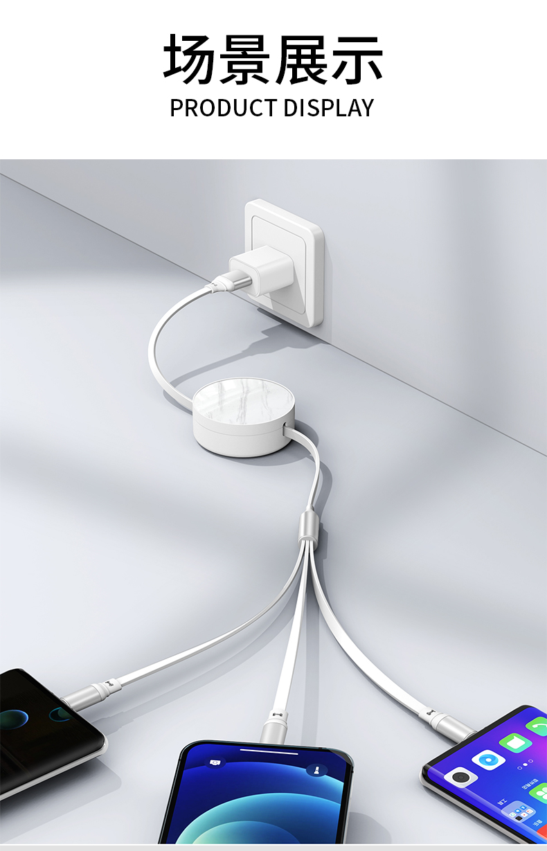 遥里逊简雅一拖三快充伸缩数据线YLX-375