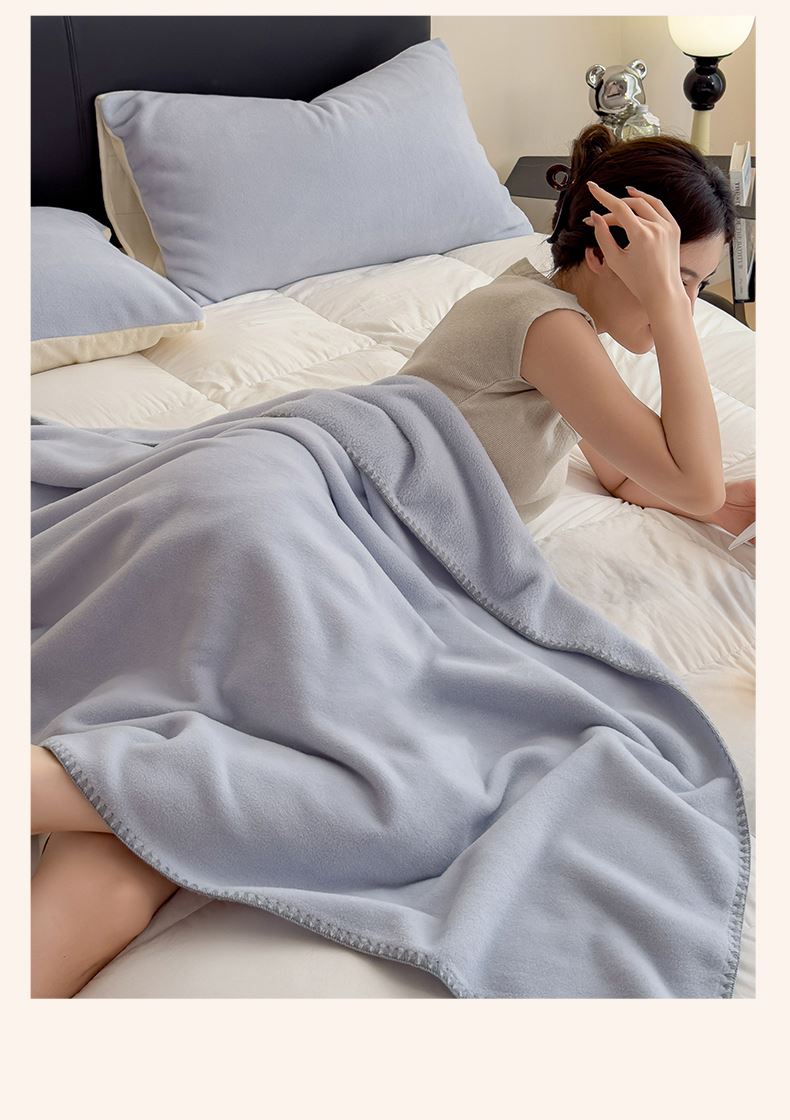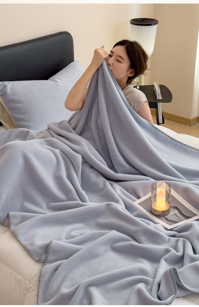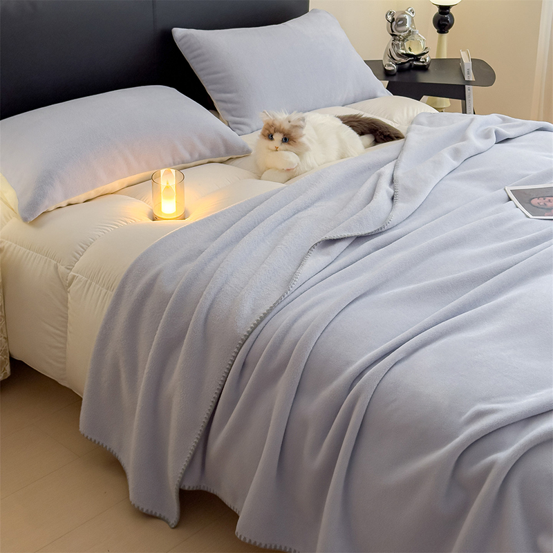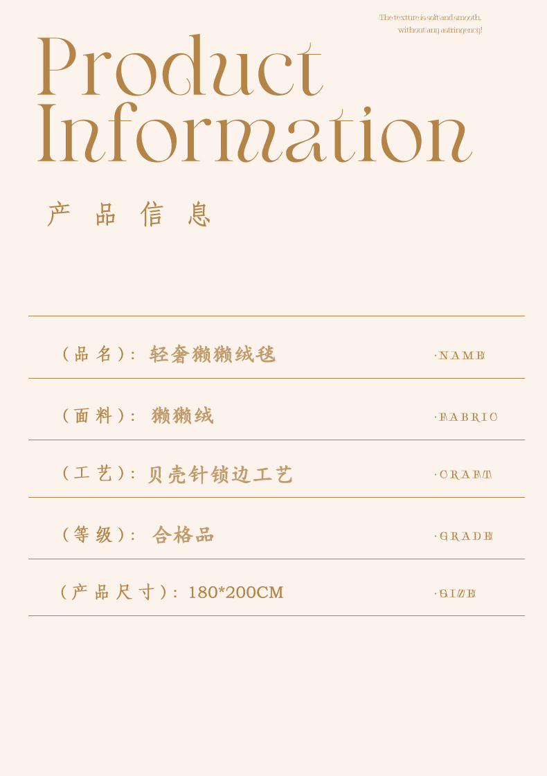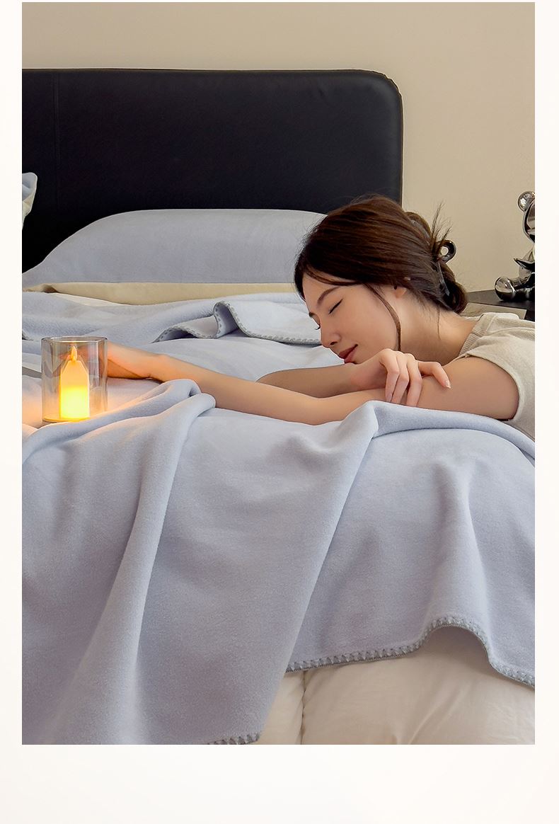 规格:180*200cm 面料:獭獭绒 克重:1100g 产品包装:精美礼盒 产品特点: 1.獭獭绒面料纤维细腻蓬松,触感柔软、顺滑亲肤。 2.面料柔和细腻,保暖性突出,轻盈不压身,盖在身上无压迫感。