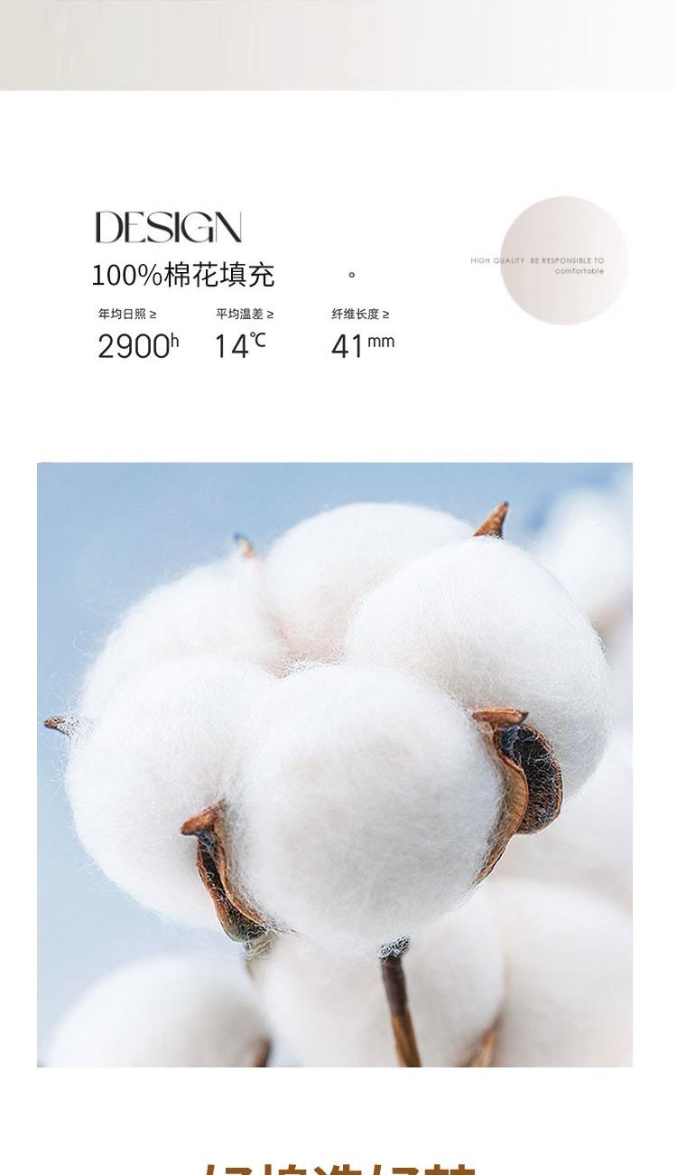 规 格:200×230(±2)cm 克 重:2500g 面 料:雪纺棉麻 填 充:棉花(1500g) 雪纺棉麻面料,创新织造,棉的亲肤,麻的透气,肌肤感知自然柔软力。 棉花-老百姓喜欢材质,聚暖保温,自然健康。 高品质、高材质、高标准,一款对生活高度负责的产品