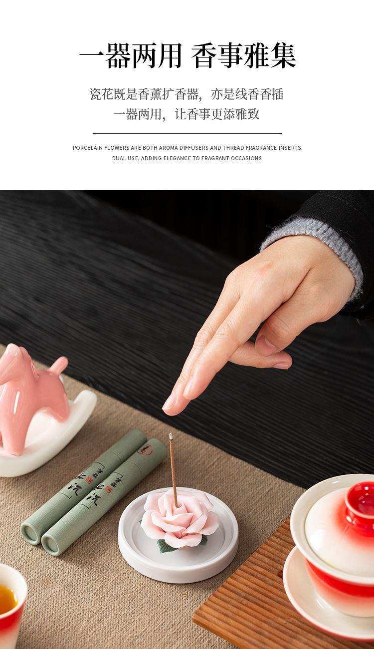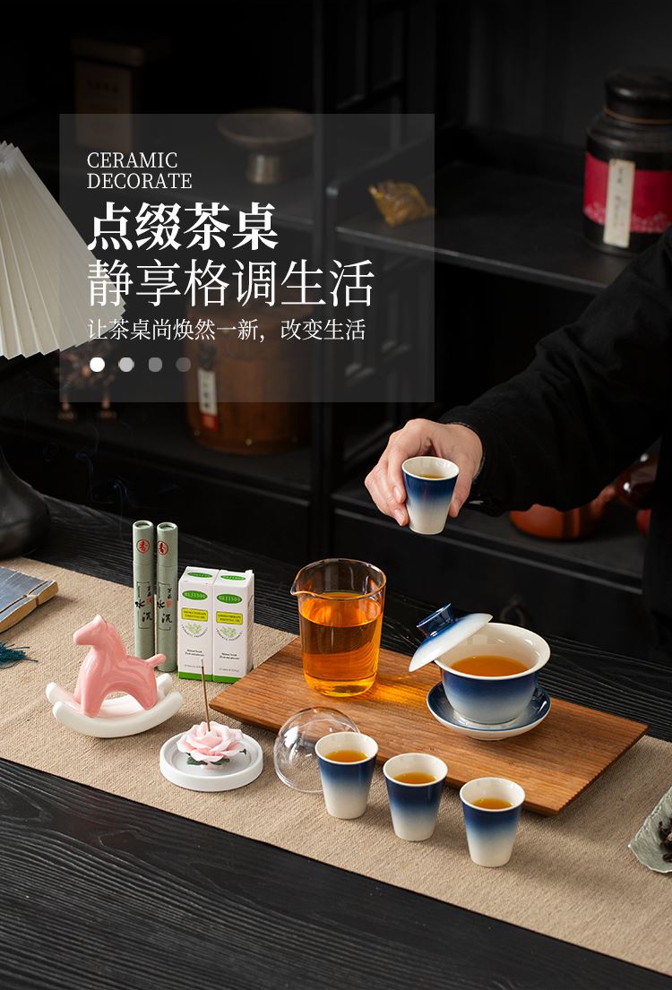 云博陶瓷渐变色马上幸福香插套装茶具摇摇马摆件瓷花香薰线香沉香