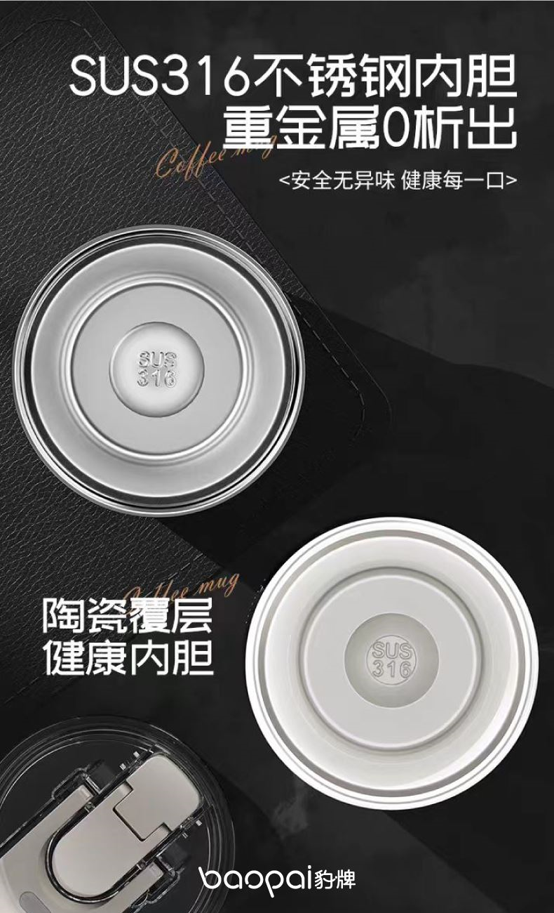 内胆材质:316不锈钢陶瓷涂层 产品容量:600ml 产品尺寸:185*75mm 礼袋尺寸:208*105*200mm 彩盒尺寸:95*95*198mm 杯盖款式:双饮盖+硅胶吸管 杯身工艺:两道喷漆产品颜色: 珍珠白,曜石黑 陶瓷覆层内胆,无异味,耐酸碱长效保温保冷,冷热随心喝,密封性好,随意放置不漏