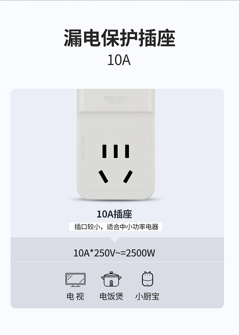 德力西电气柔性漏电保护插座一位五孔
