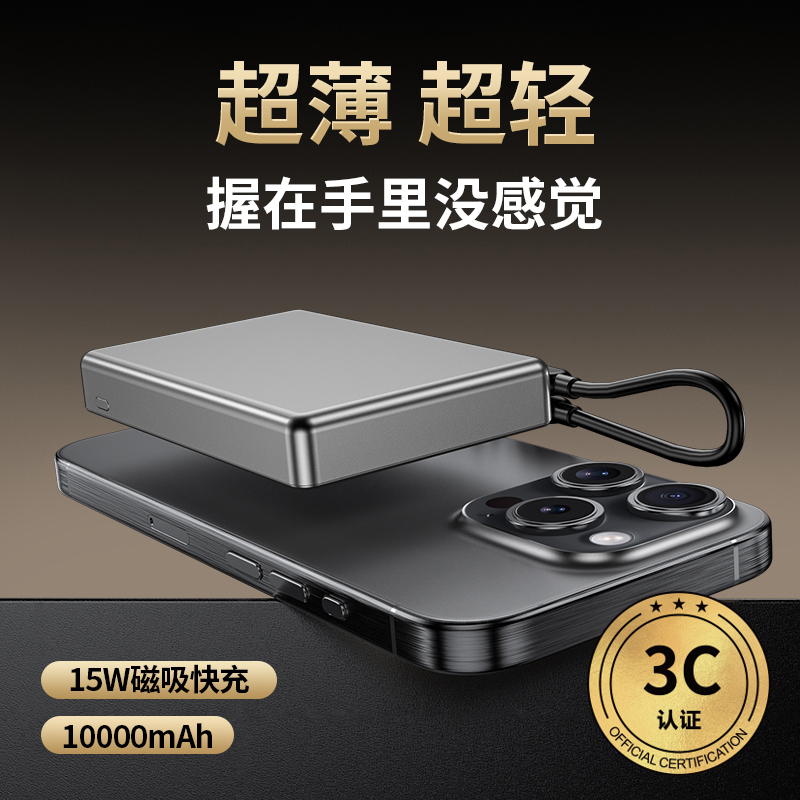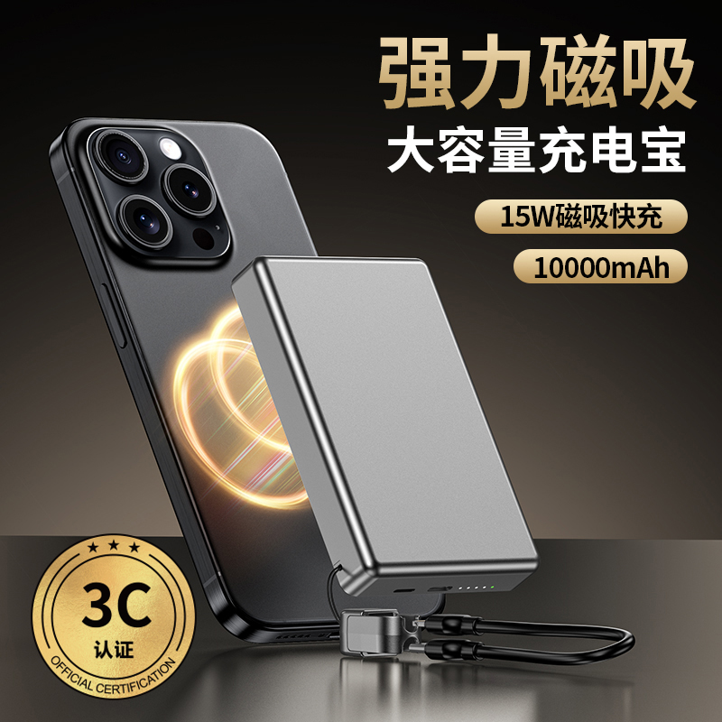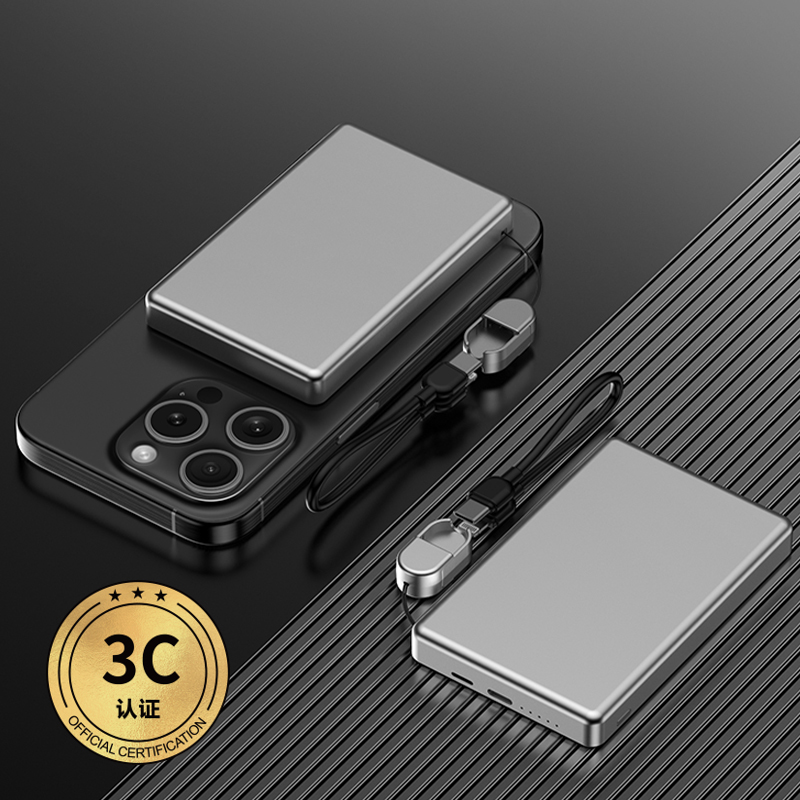 3C认证超薄商务铝合金磁吸自带线移动电源C15N