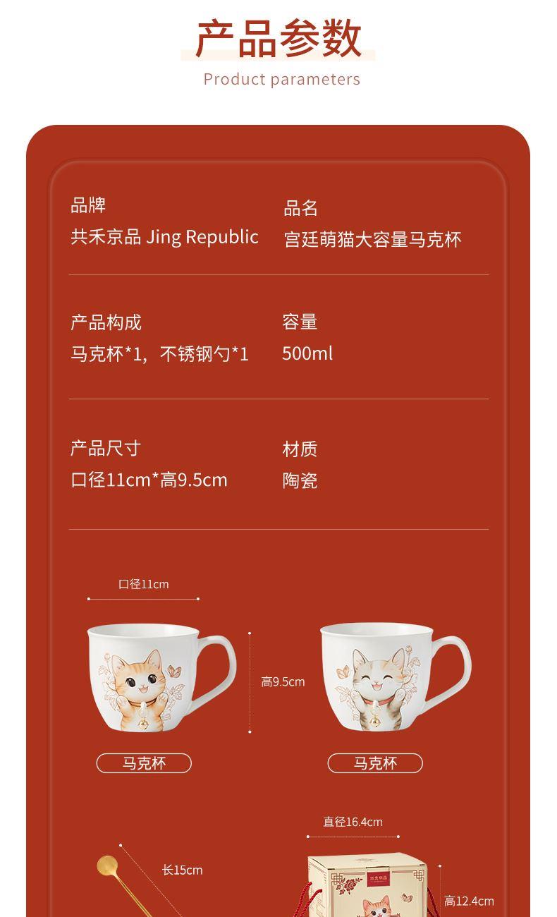 共禾京品宫廷萌猫大容量马克杯(橘猫/三花)