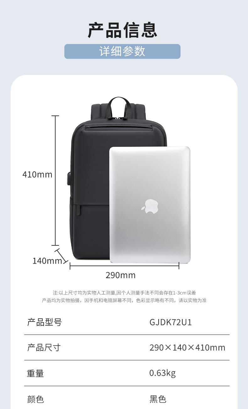 类别:双肩包 颜色:黑色 面料:织物 里料:织物 闭合方式:拉链 尺寸:290*140*410mm 吊牌价 : 450元 适用场景:日常包 上市时间:2025年秋季 包袋大小:中包 适用人群:男女通用