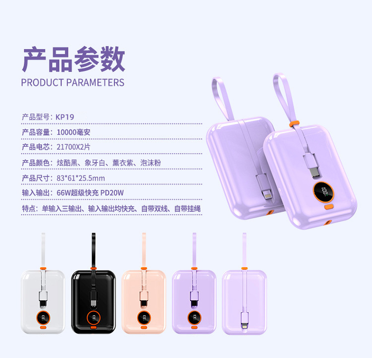 聪鲸22.5W快充自带线10000mAh移动电源KP19