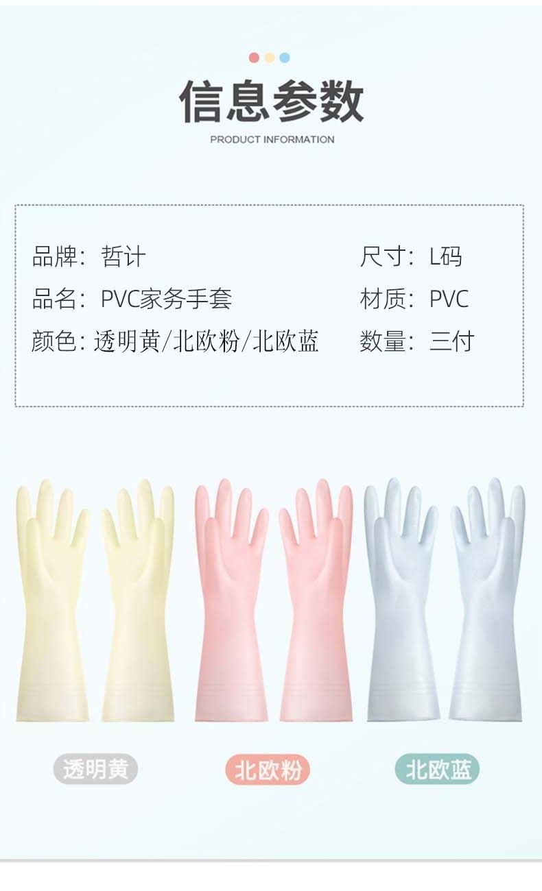 哲计PVC家务手套三付装L码ST-71895(颜色随机)