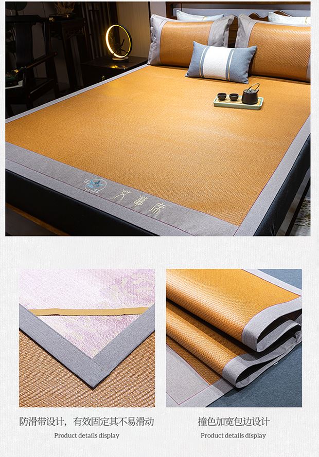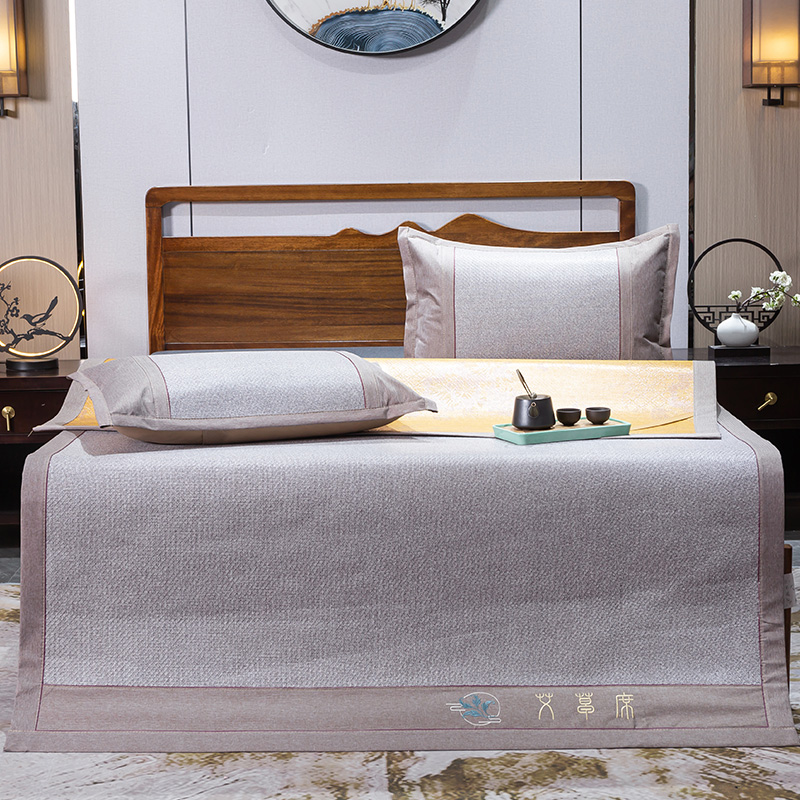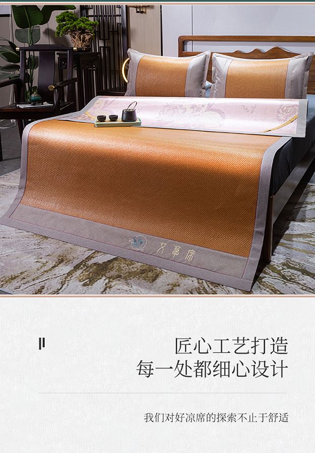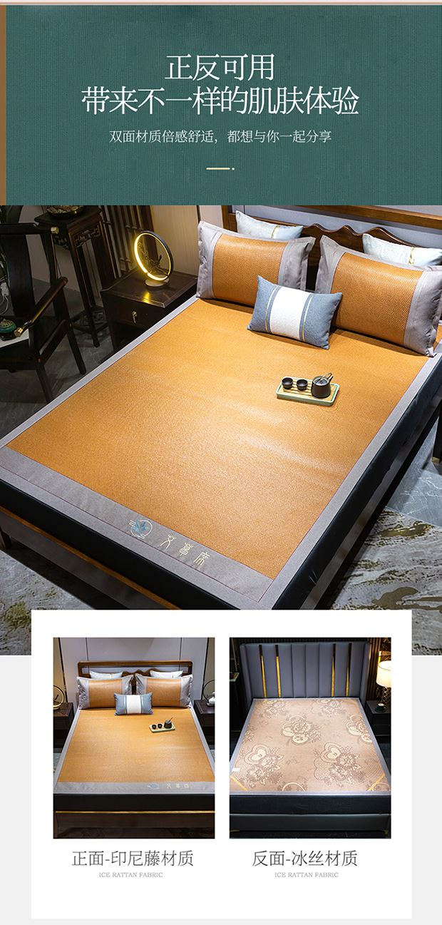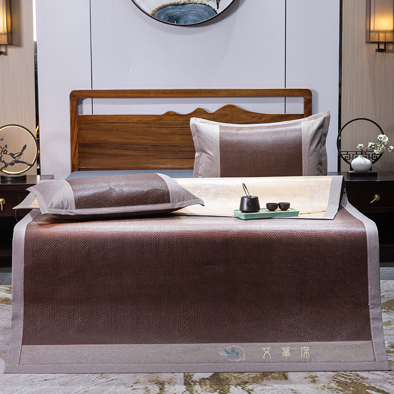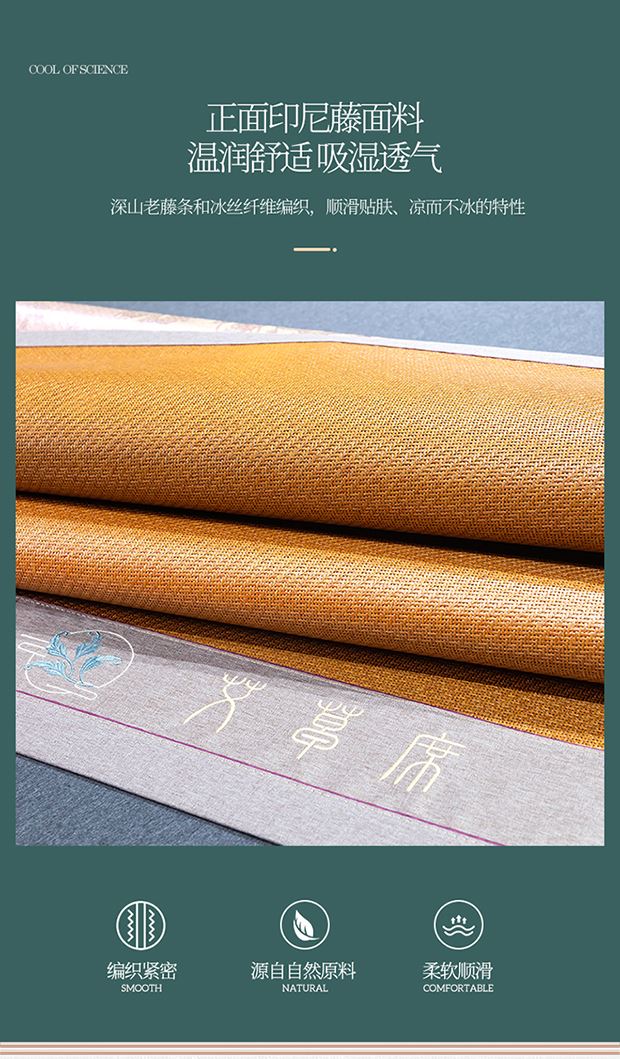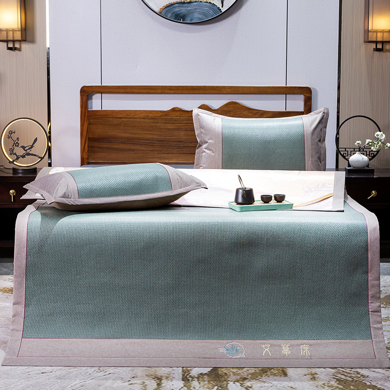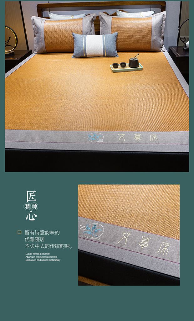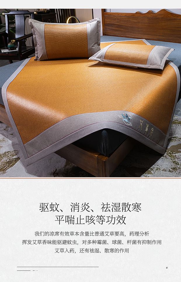 花花公子-家纺-艾草刺绣可折叠加厚养身凉席藤席三件套
